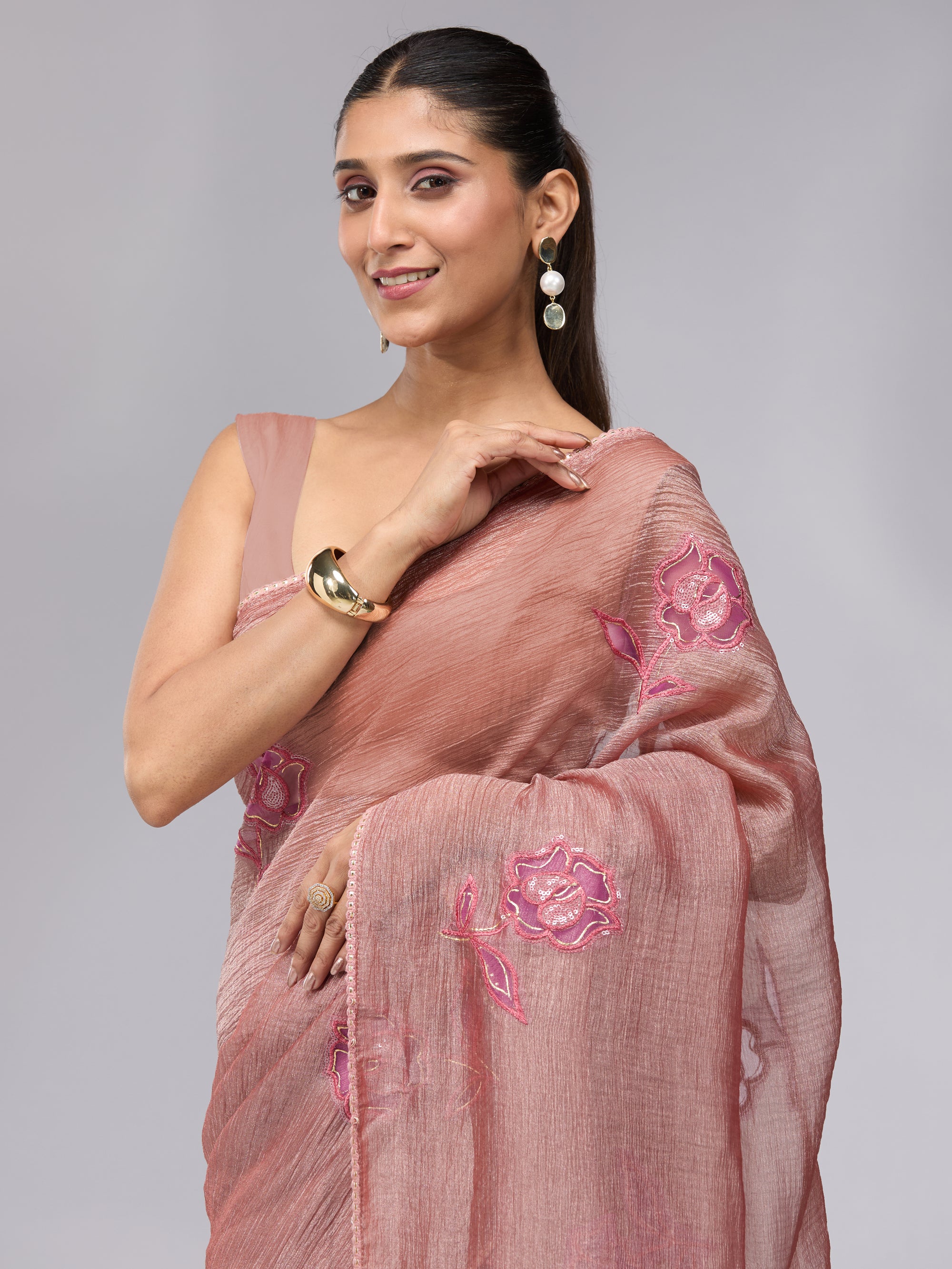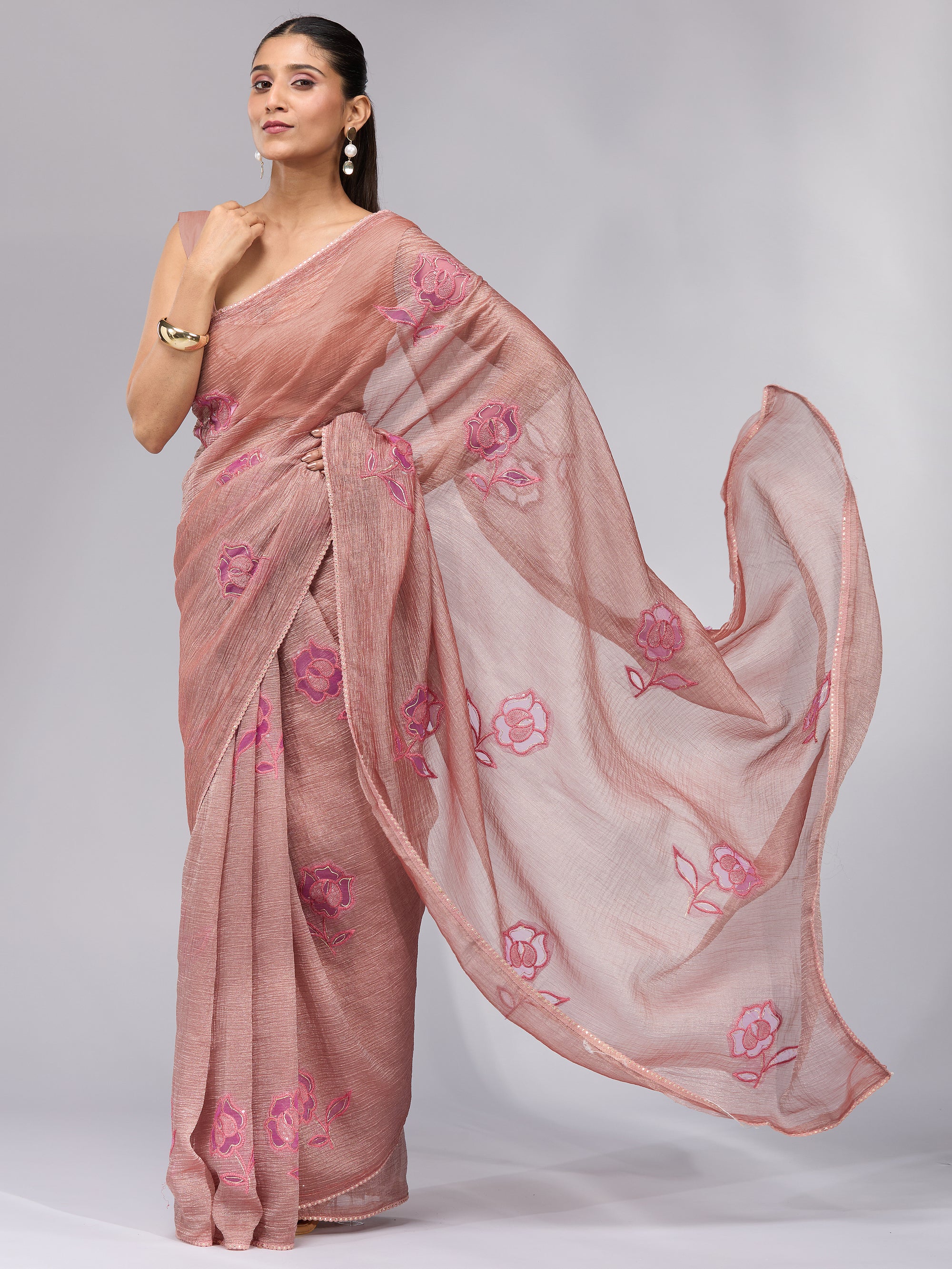 Ravishing organza saree with moti, sequin, stone & embroidery