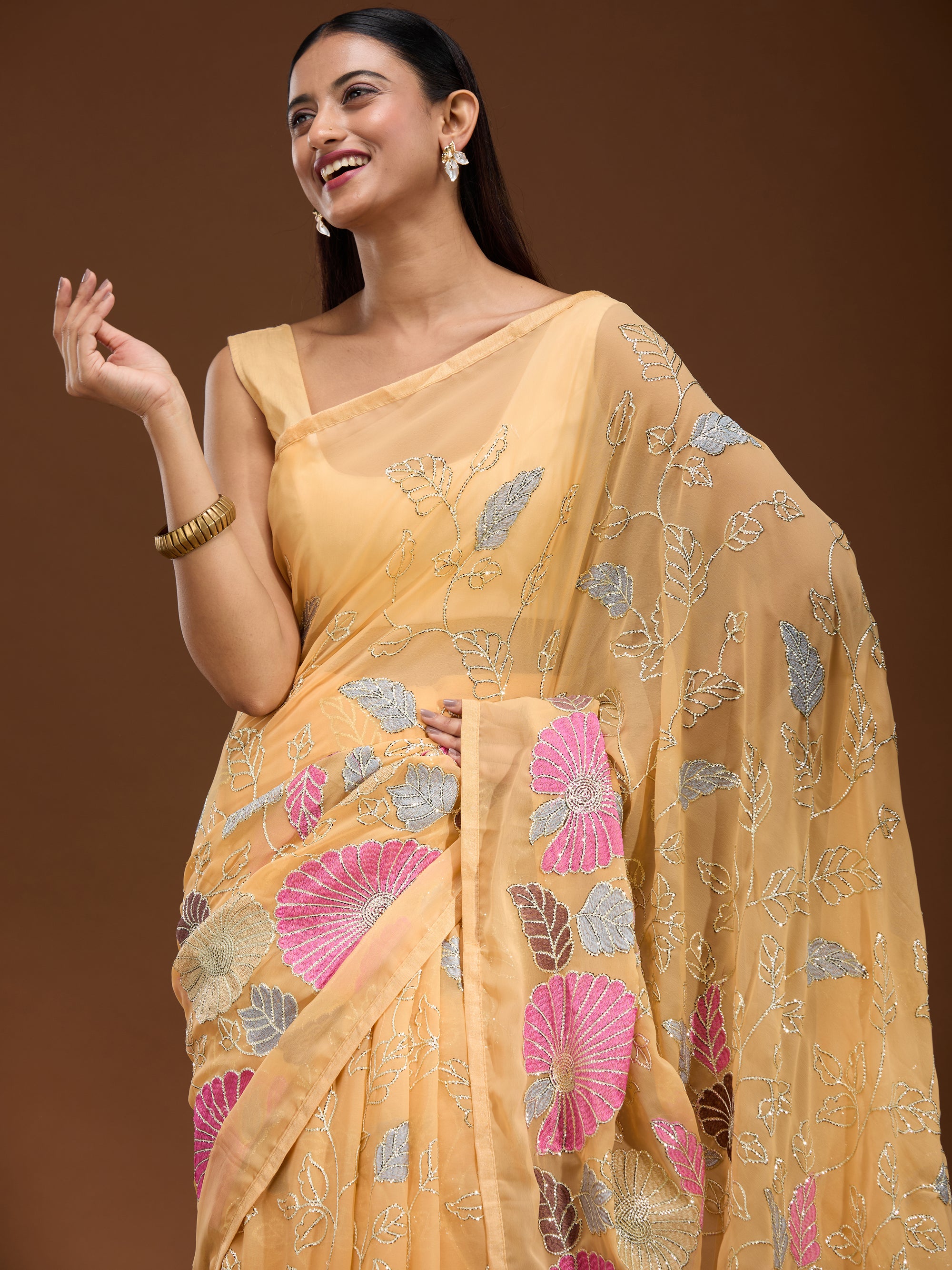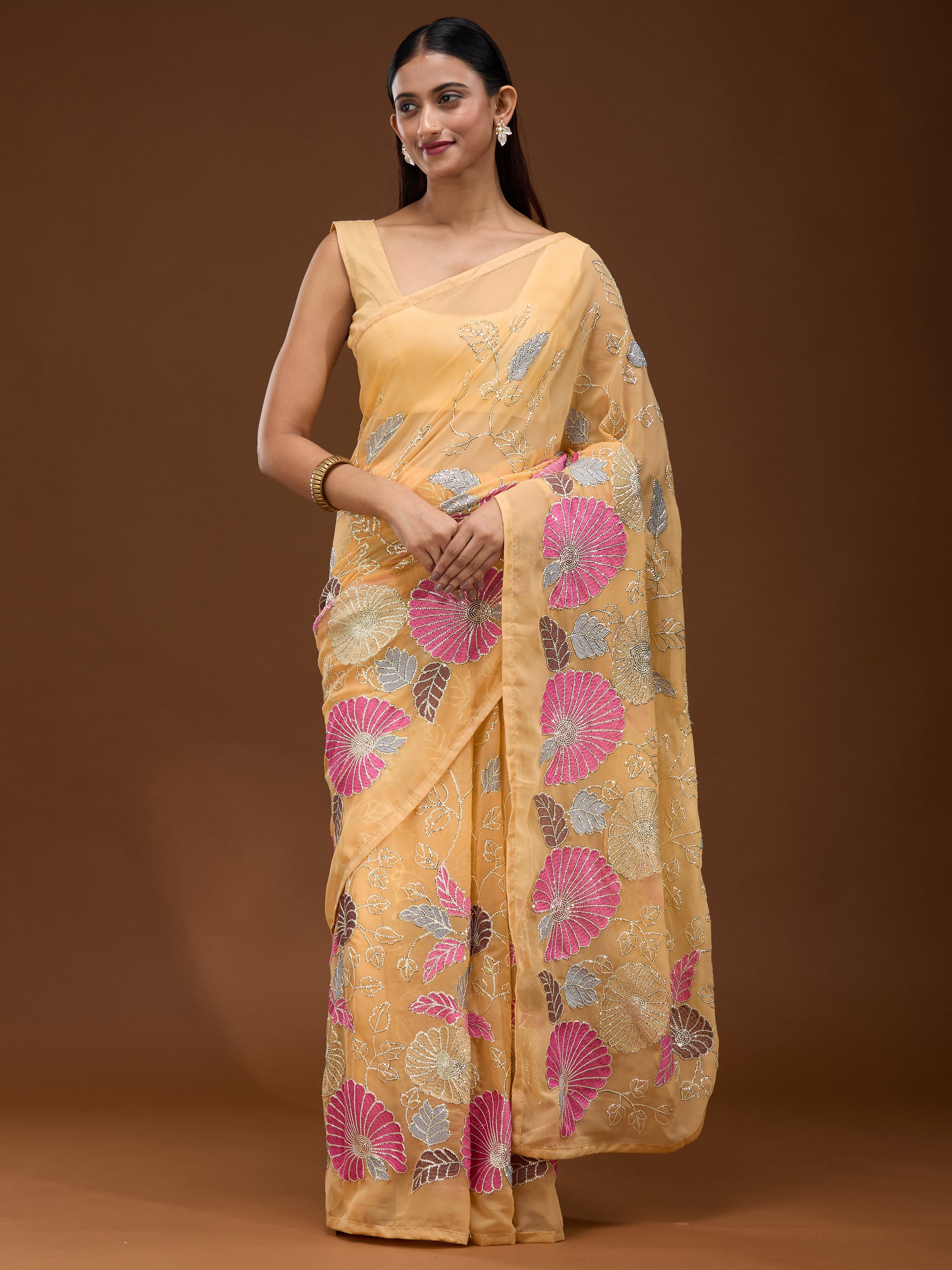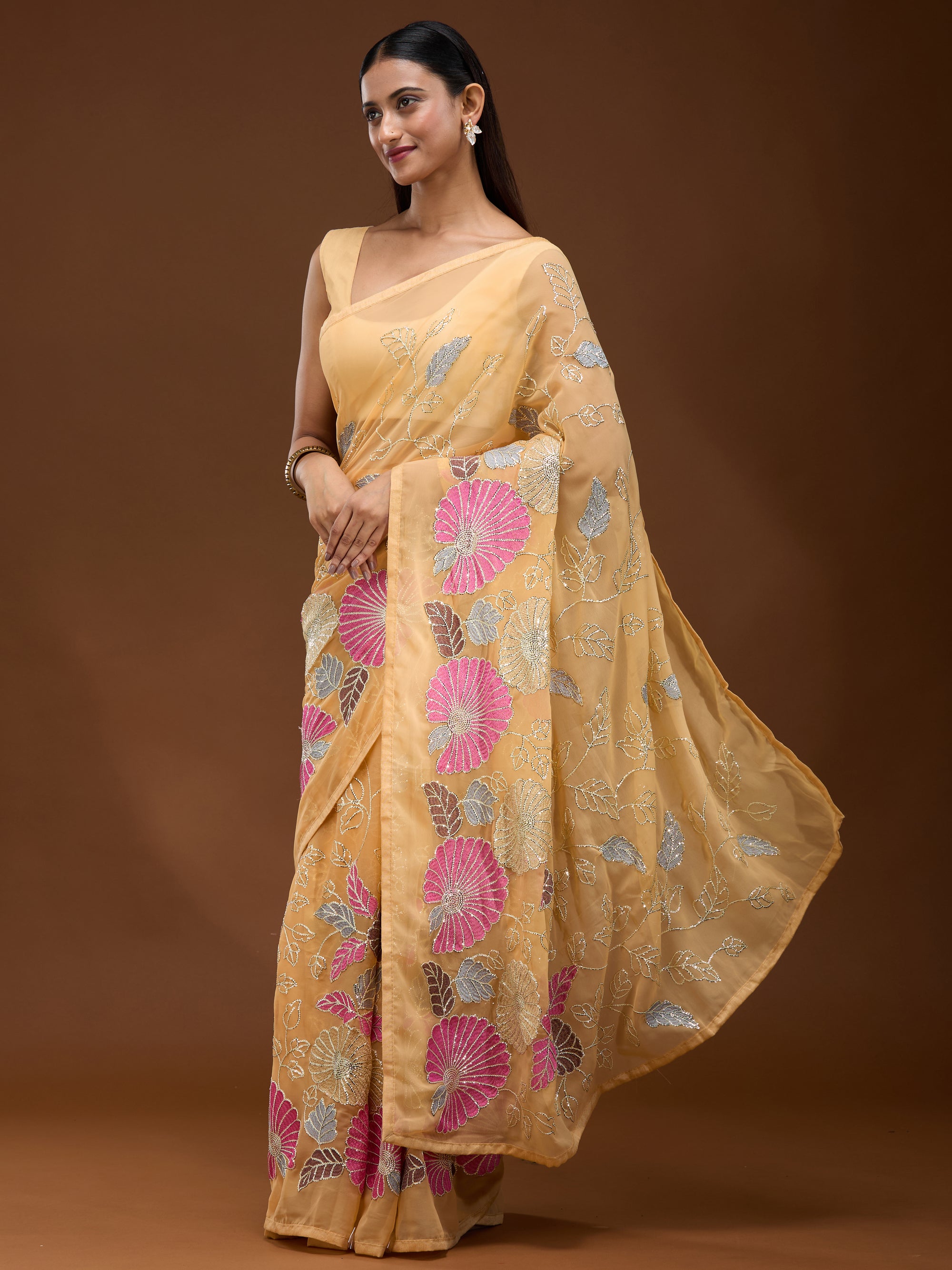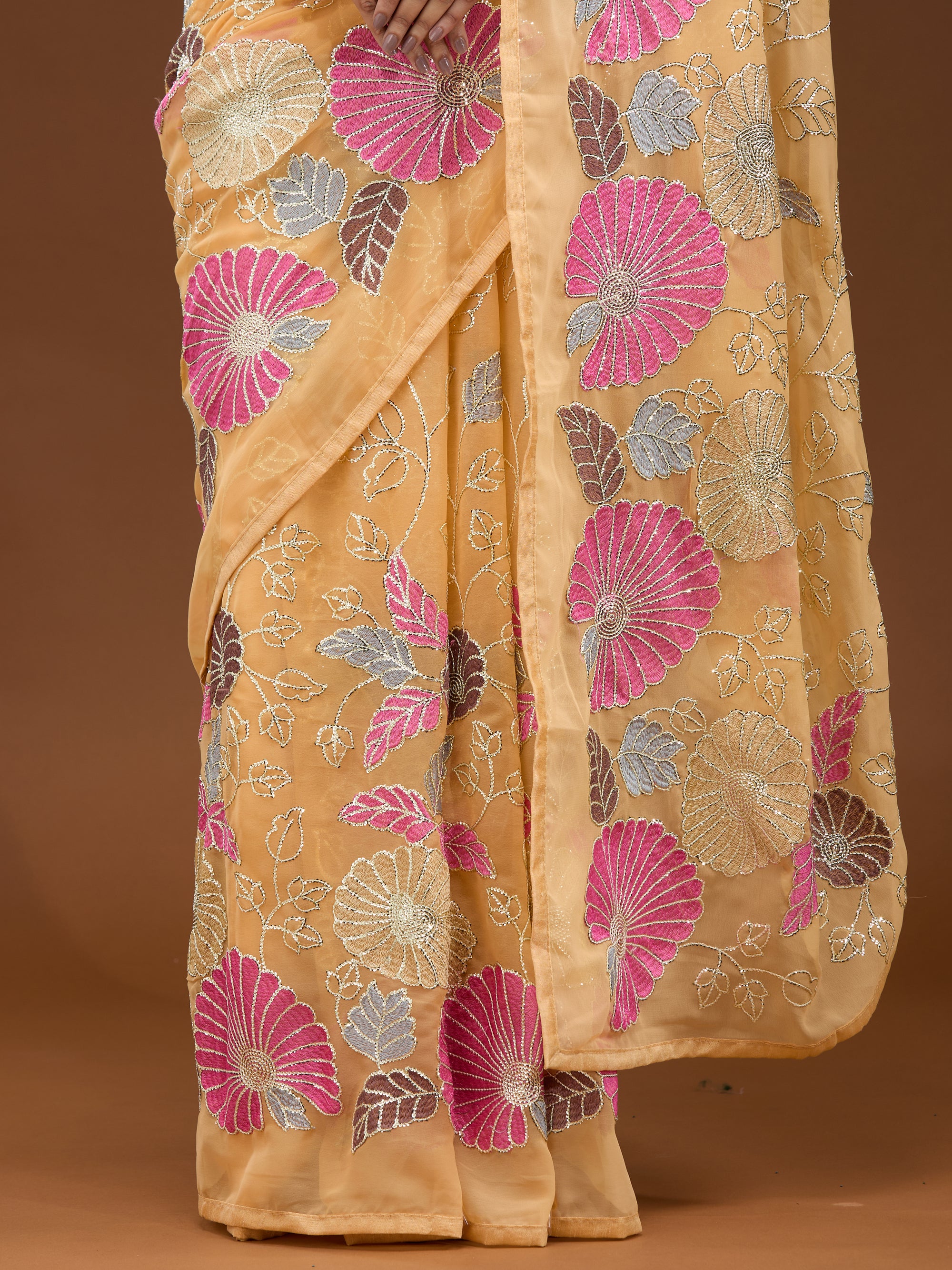 Ravishing organza saree with moti, sequin, stone & embroidery