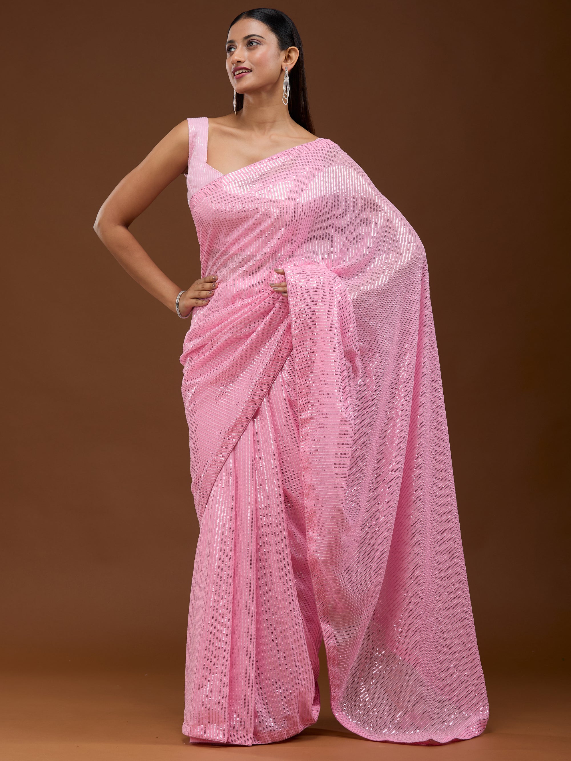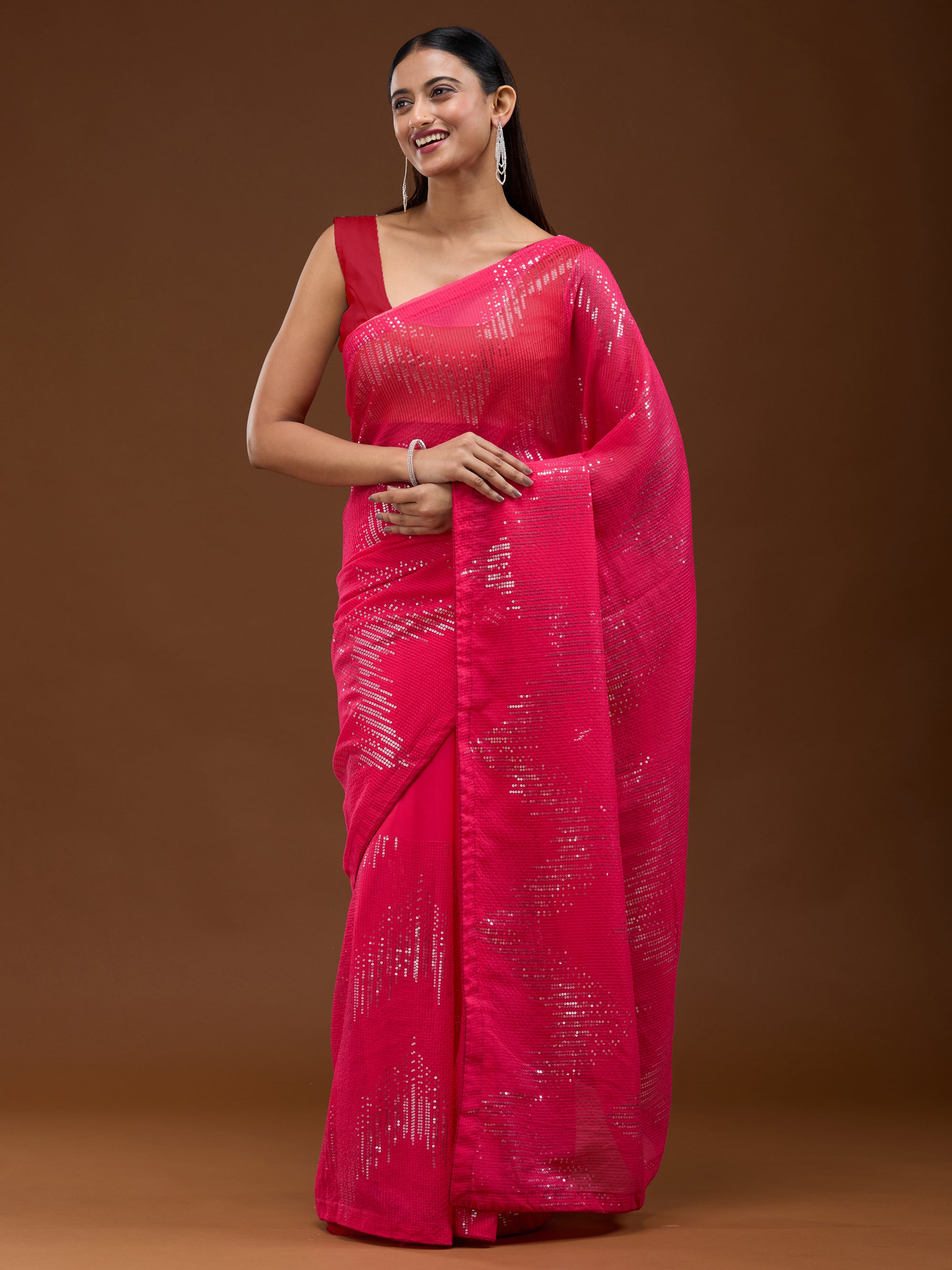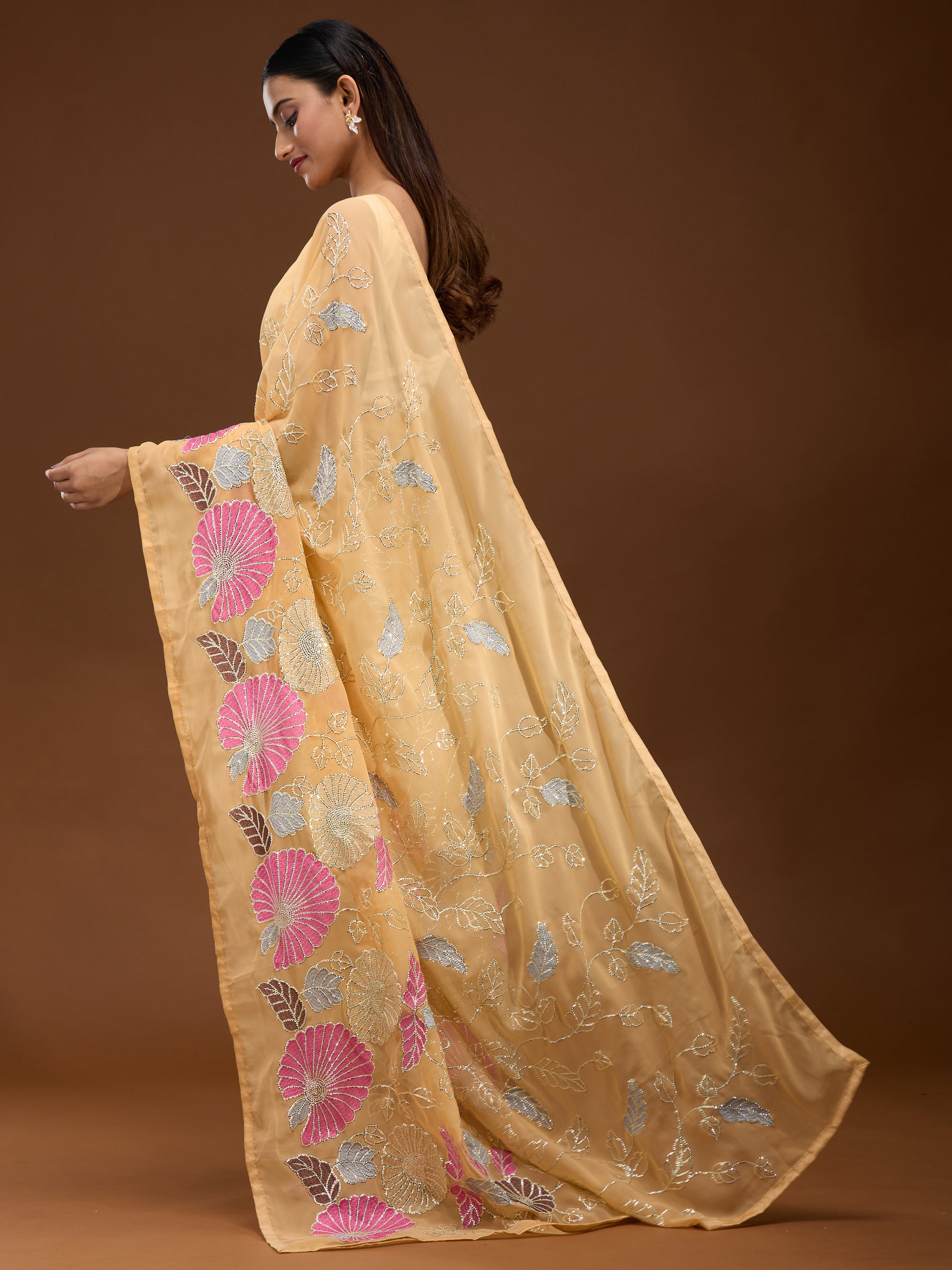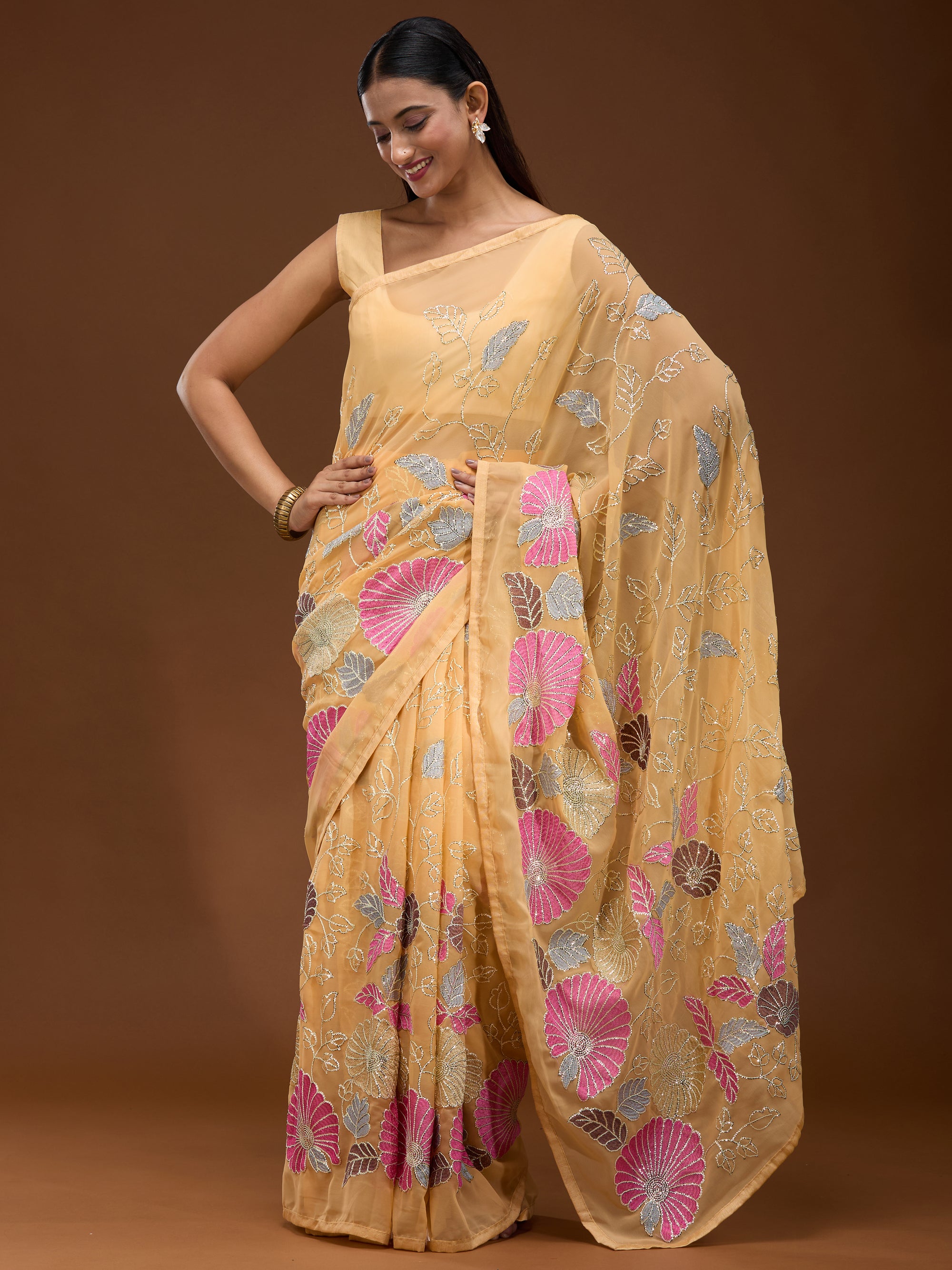 Ravishing organza saree with moti, sequin, stone & embroidery