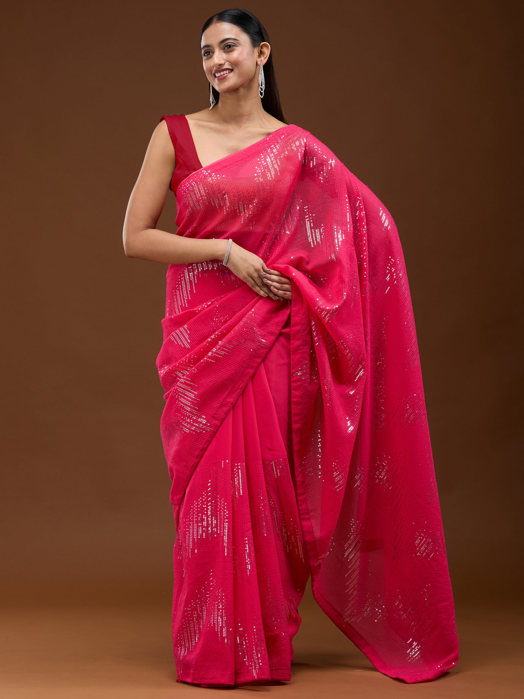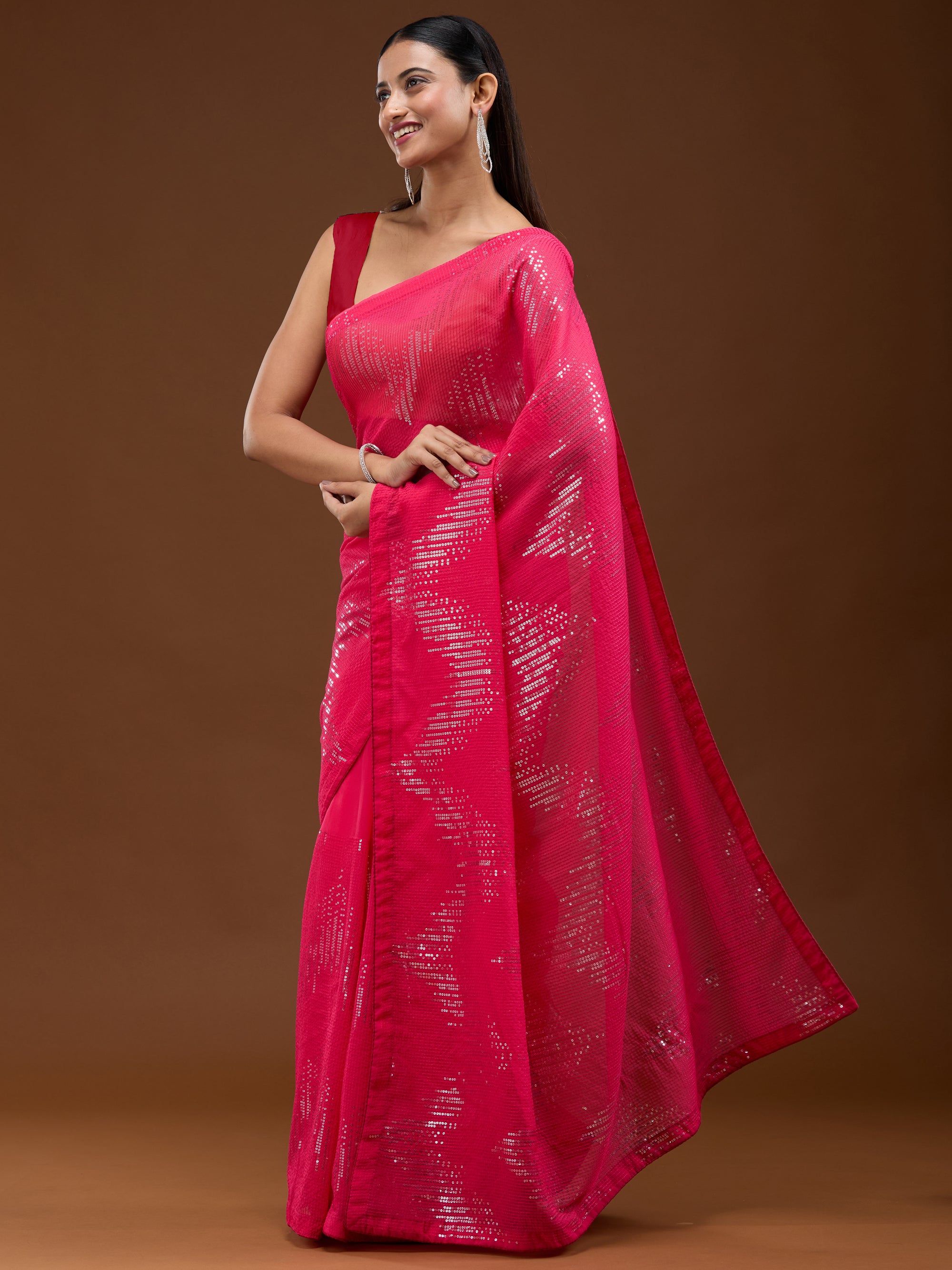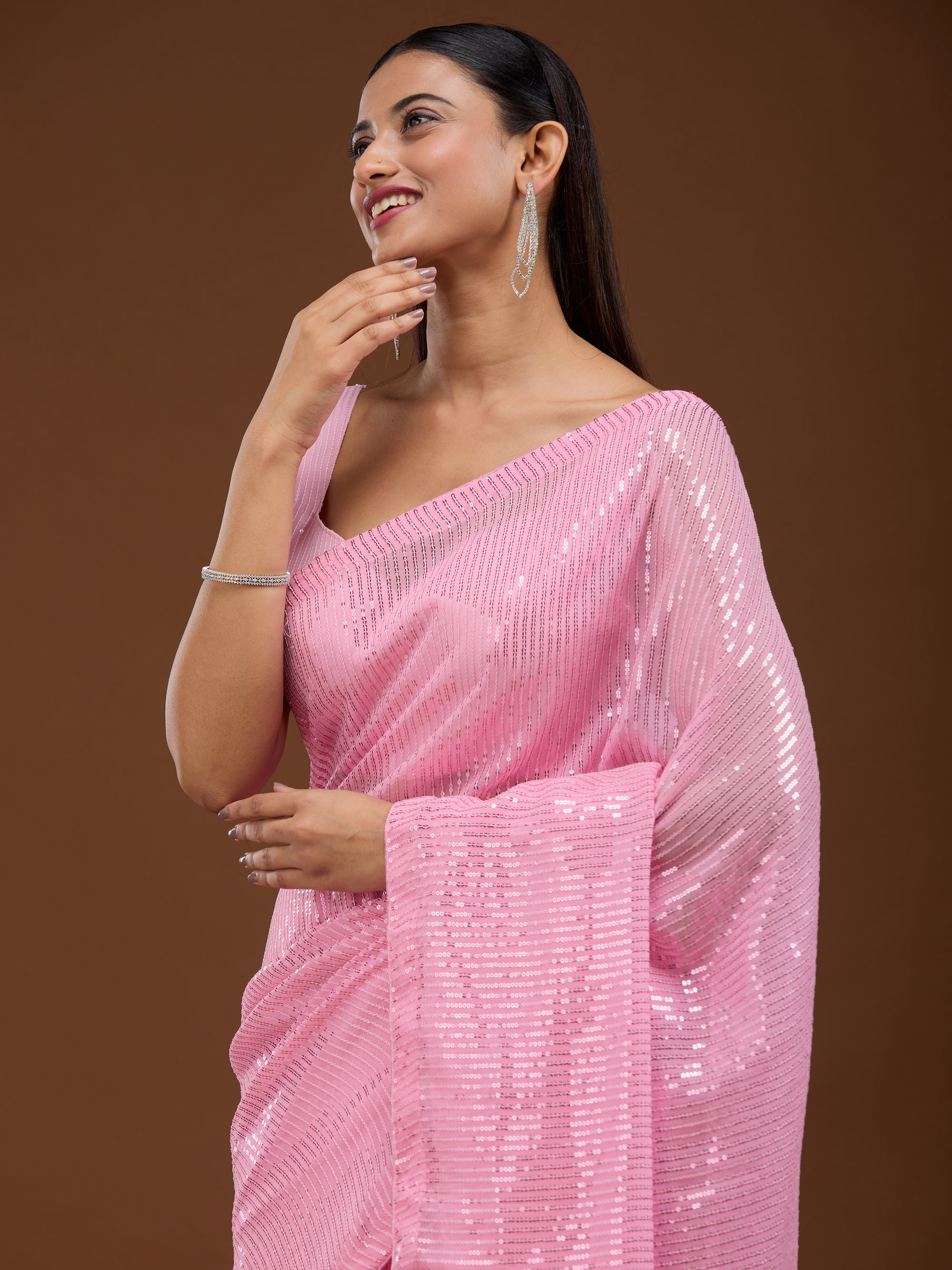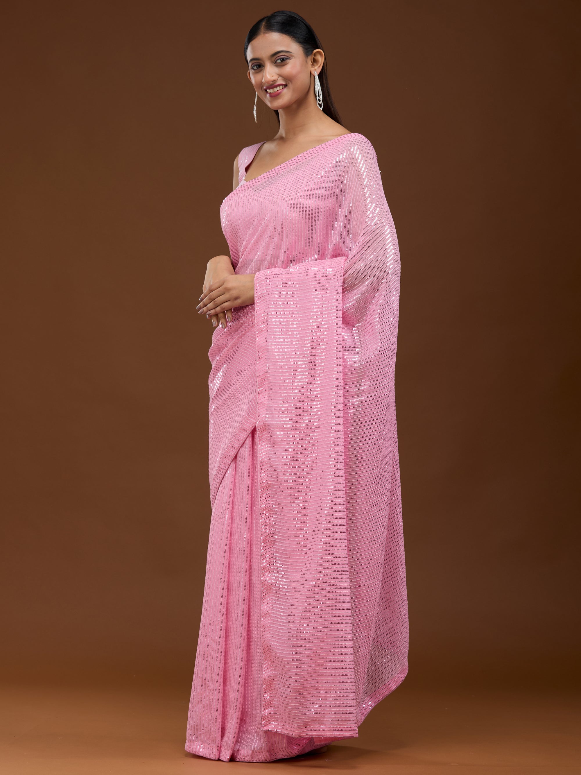 Ravishing organza saree with moti, sequin, stone & embroidery