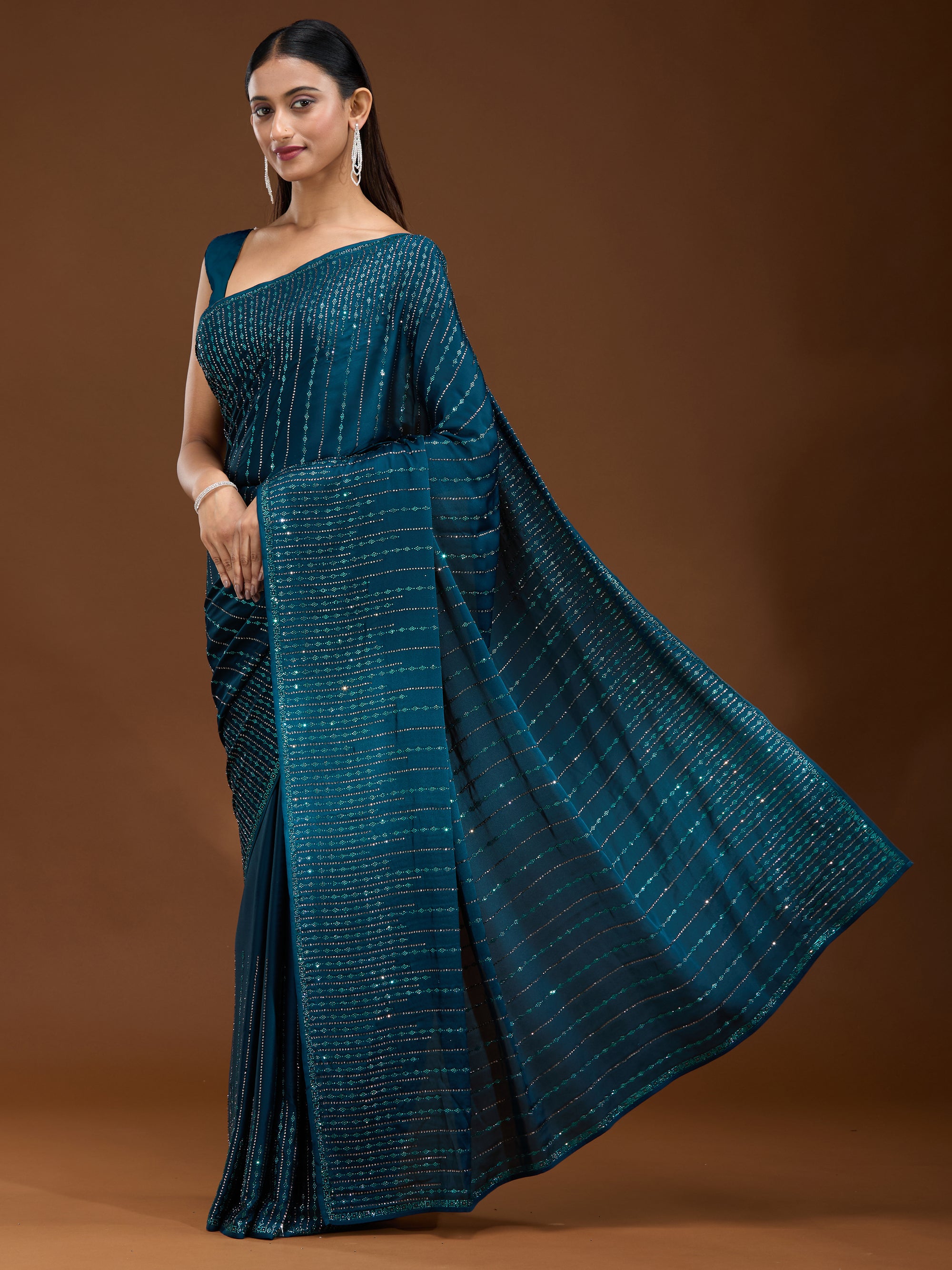 Beautiful georgette with stones, swarovski, zari & embroidery