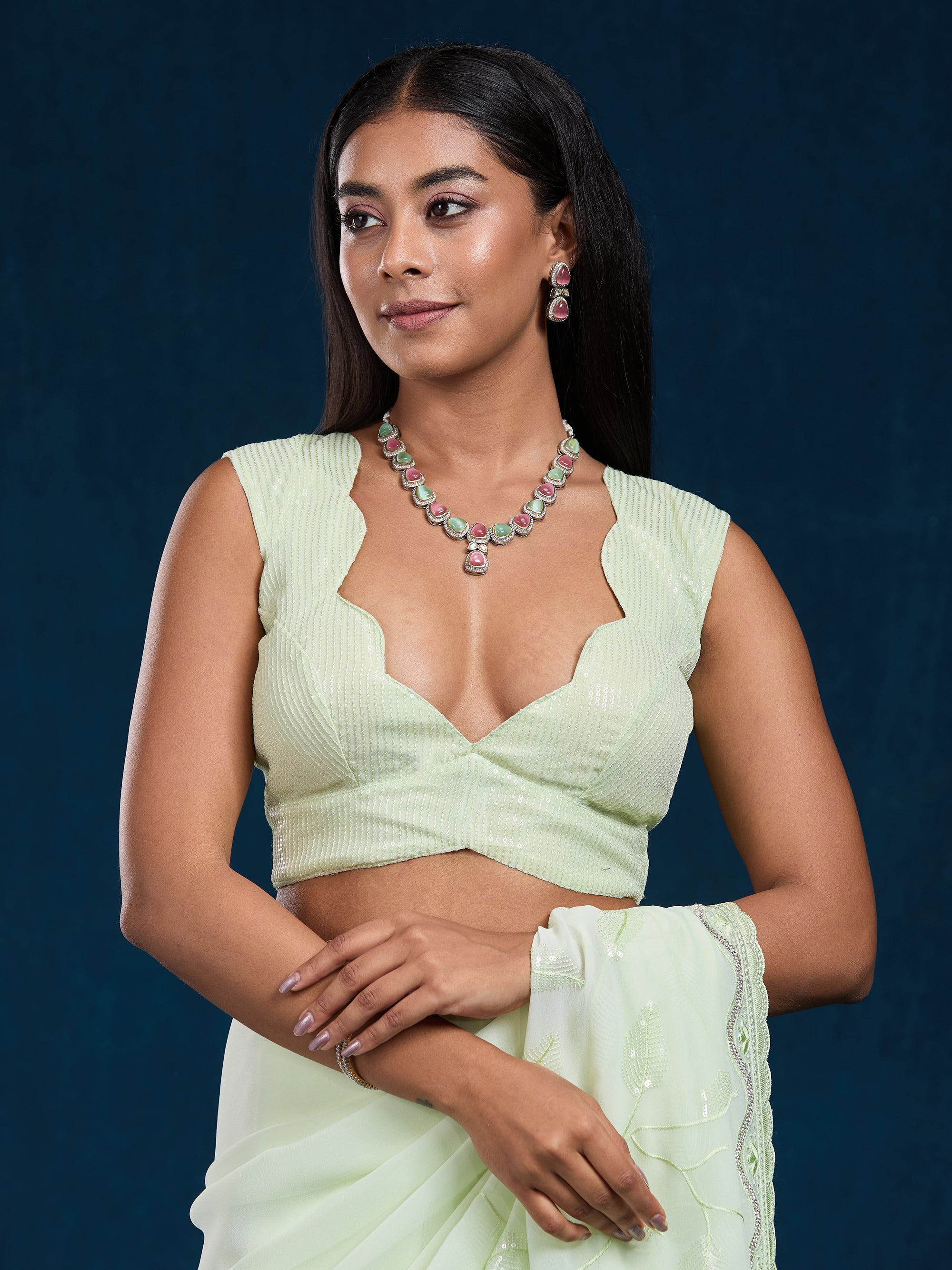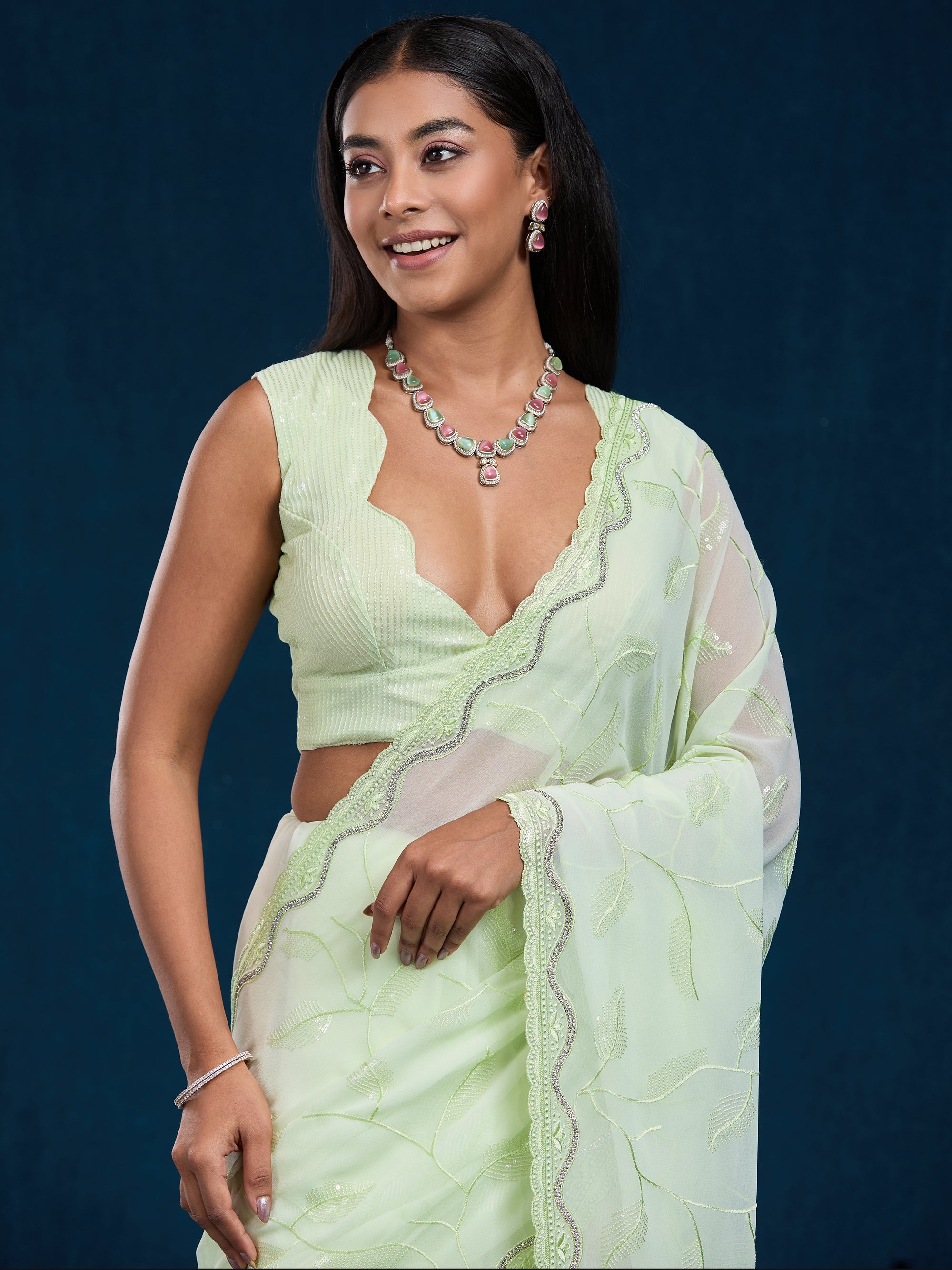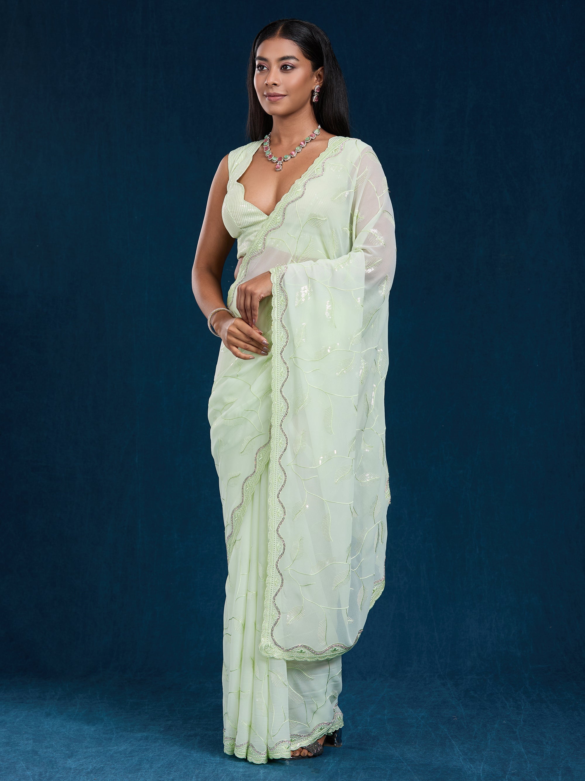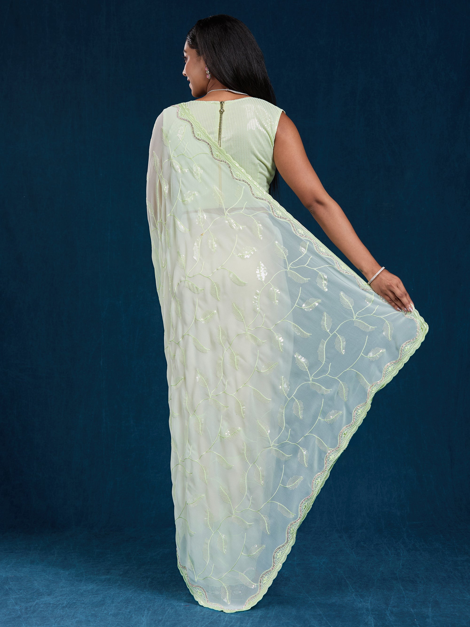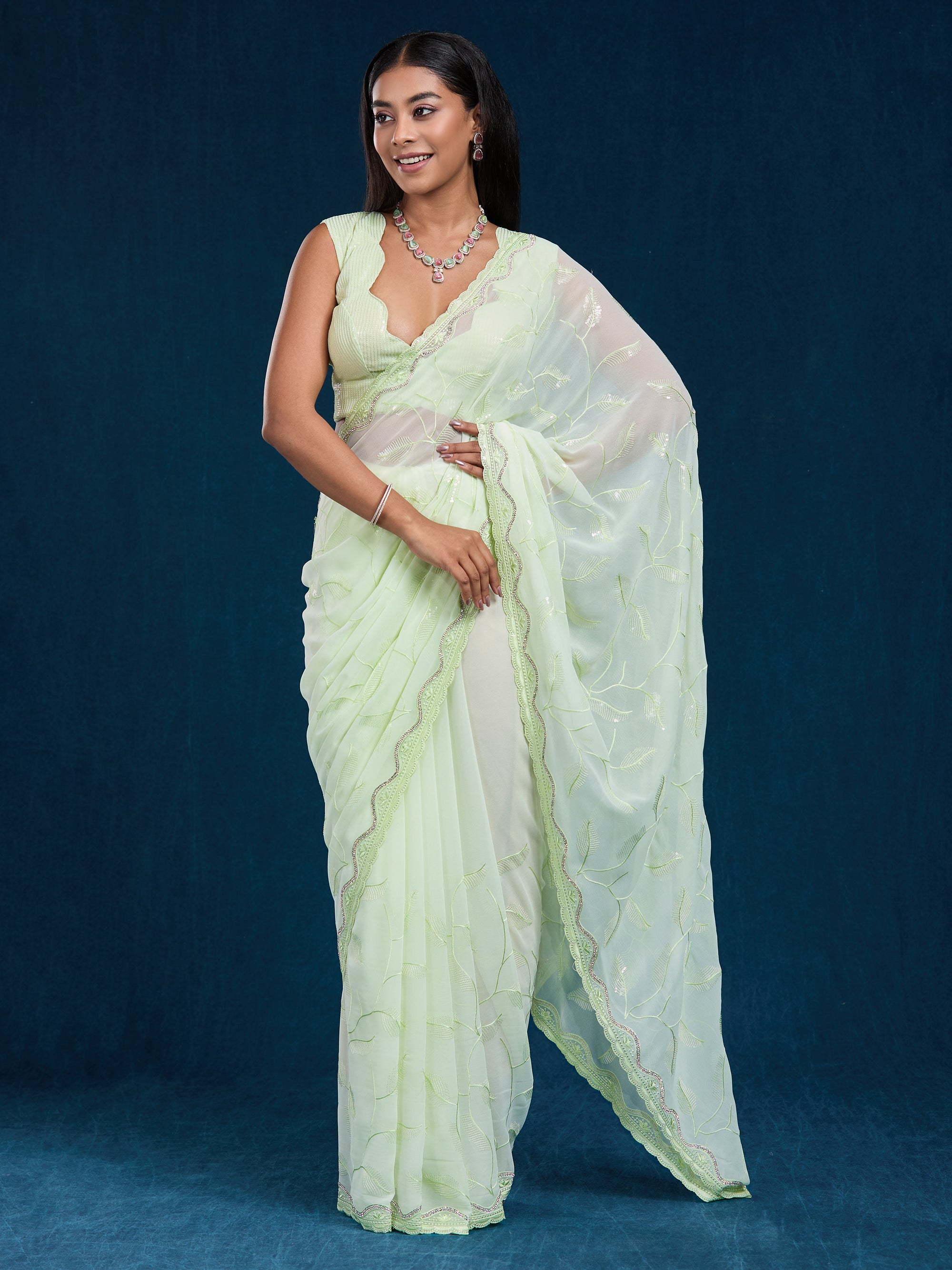 Gorgeous soft organza saree with all-over gota, zari & stones