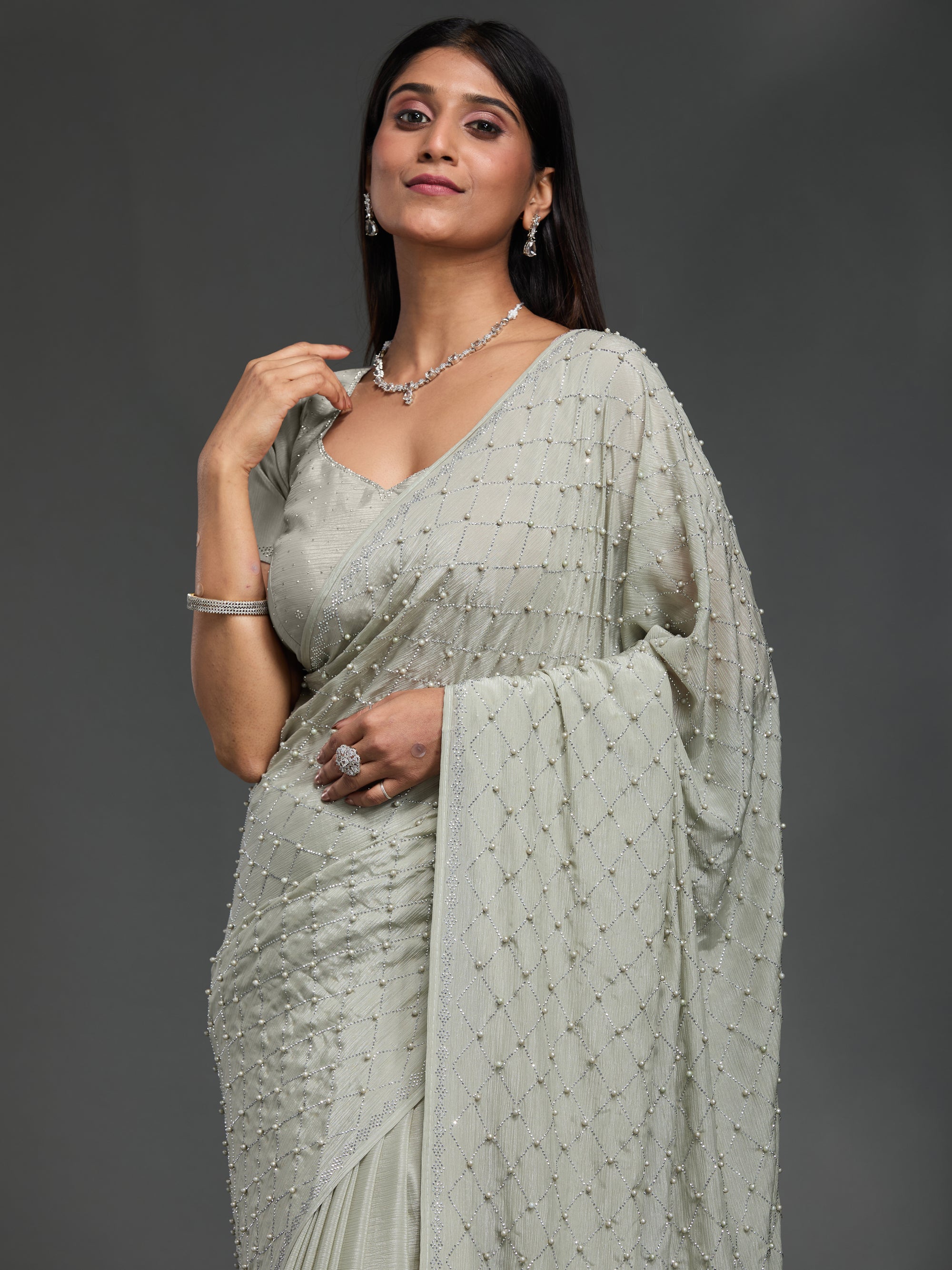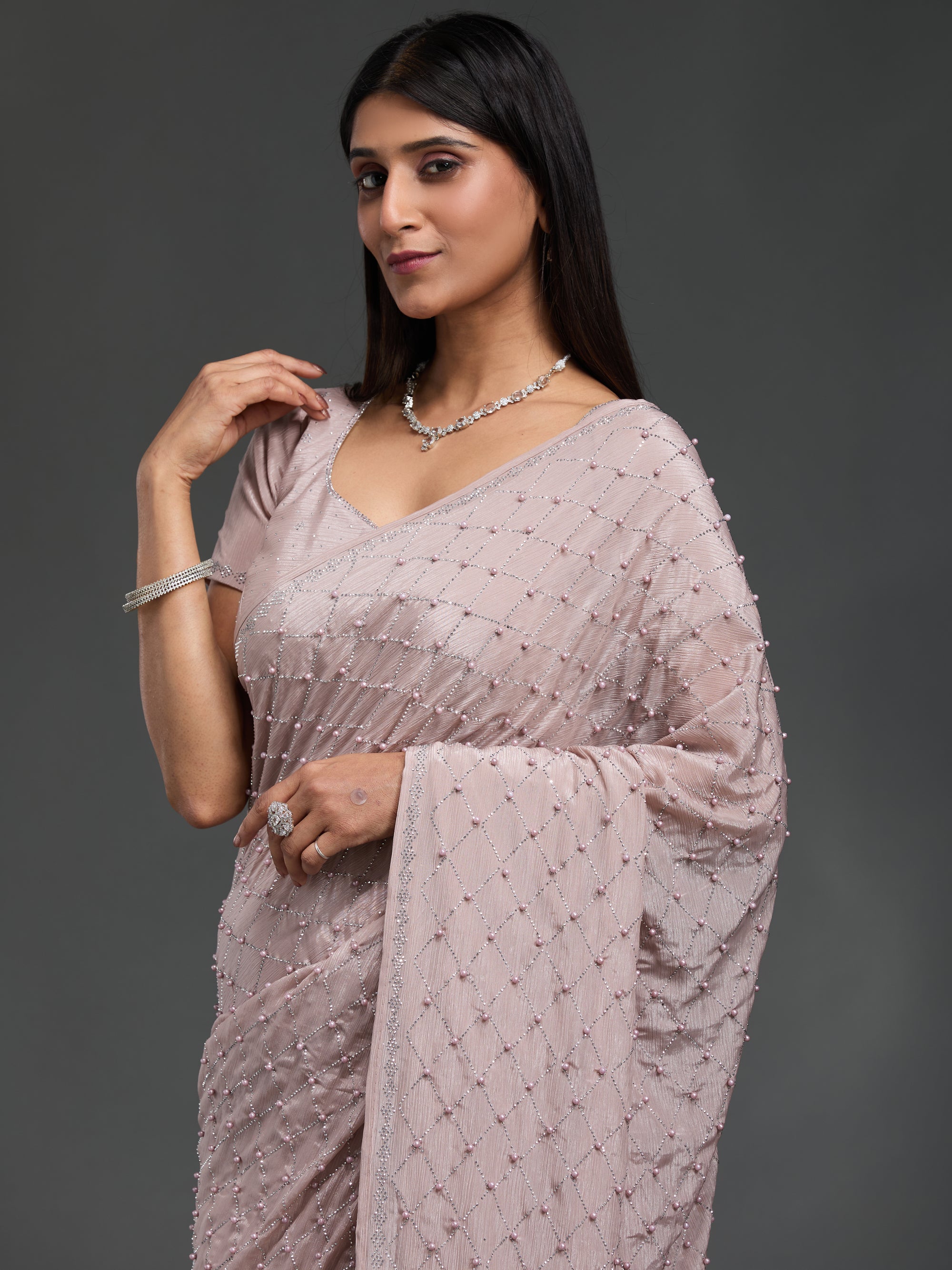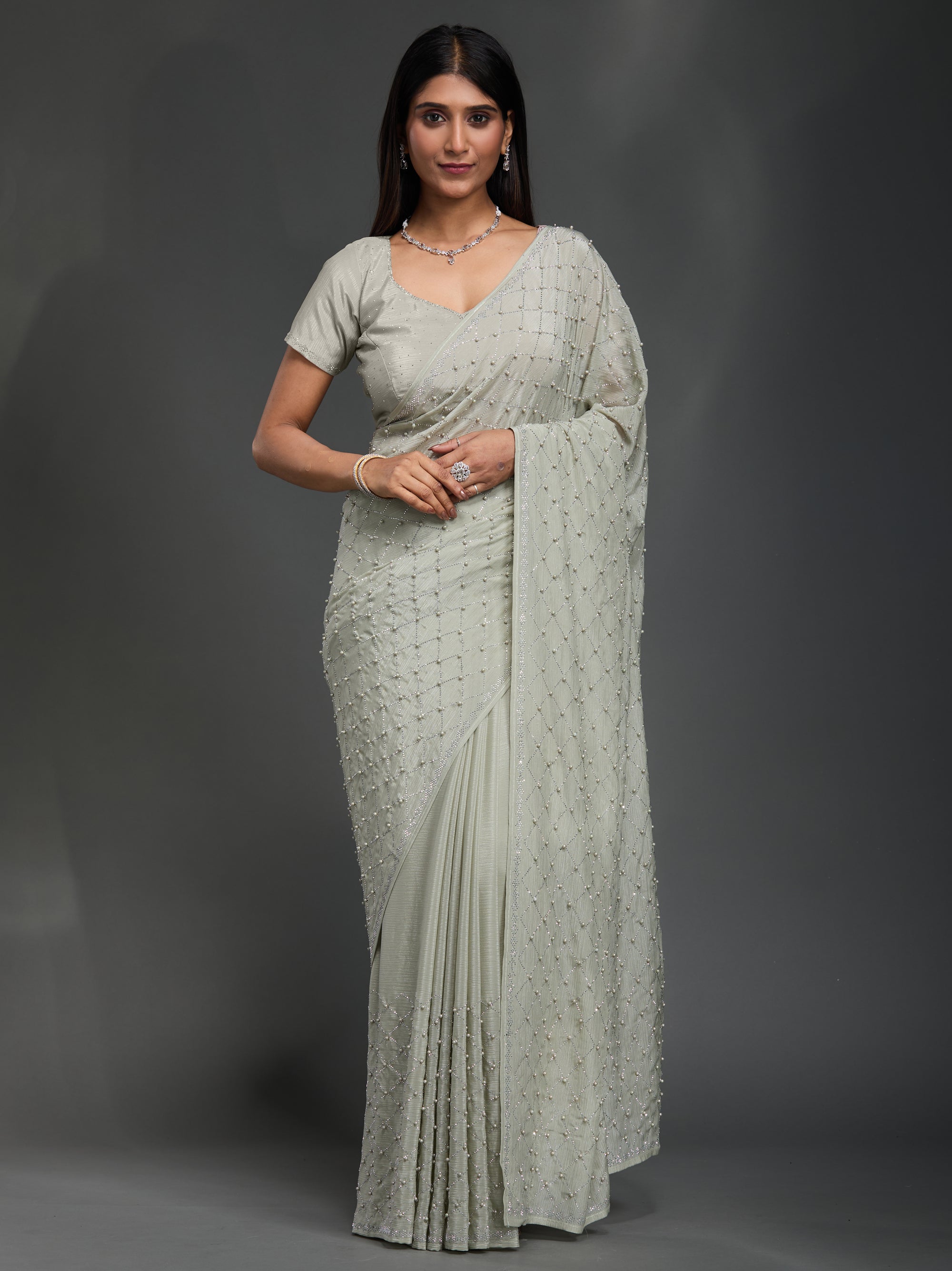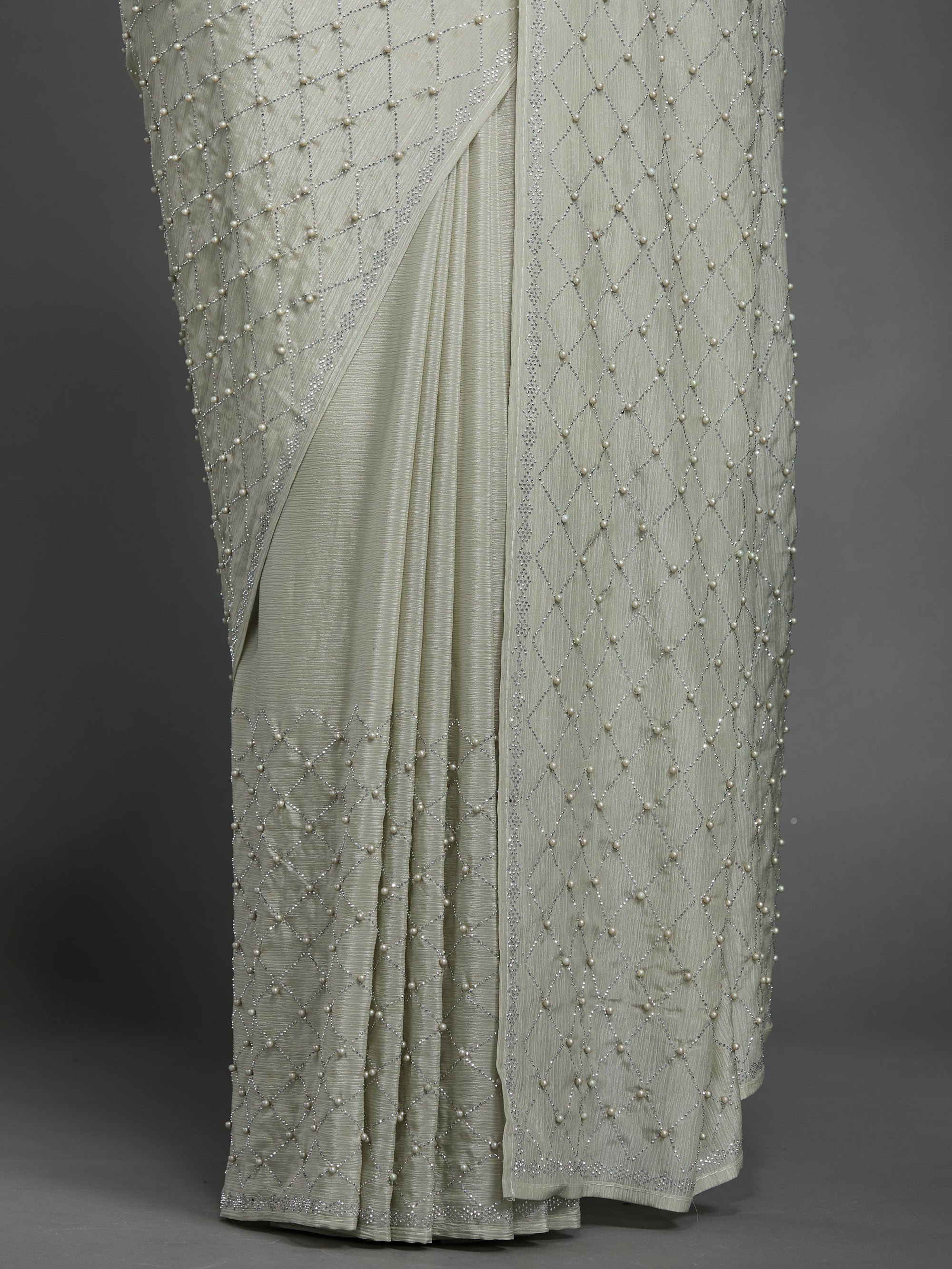 Ravishing organza saree with moti, sequin, stone & embroidery