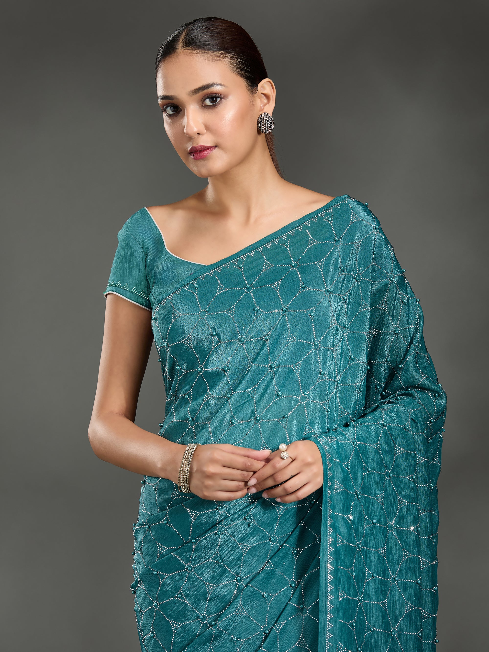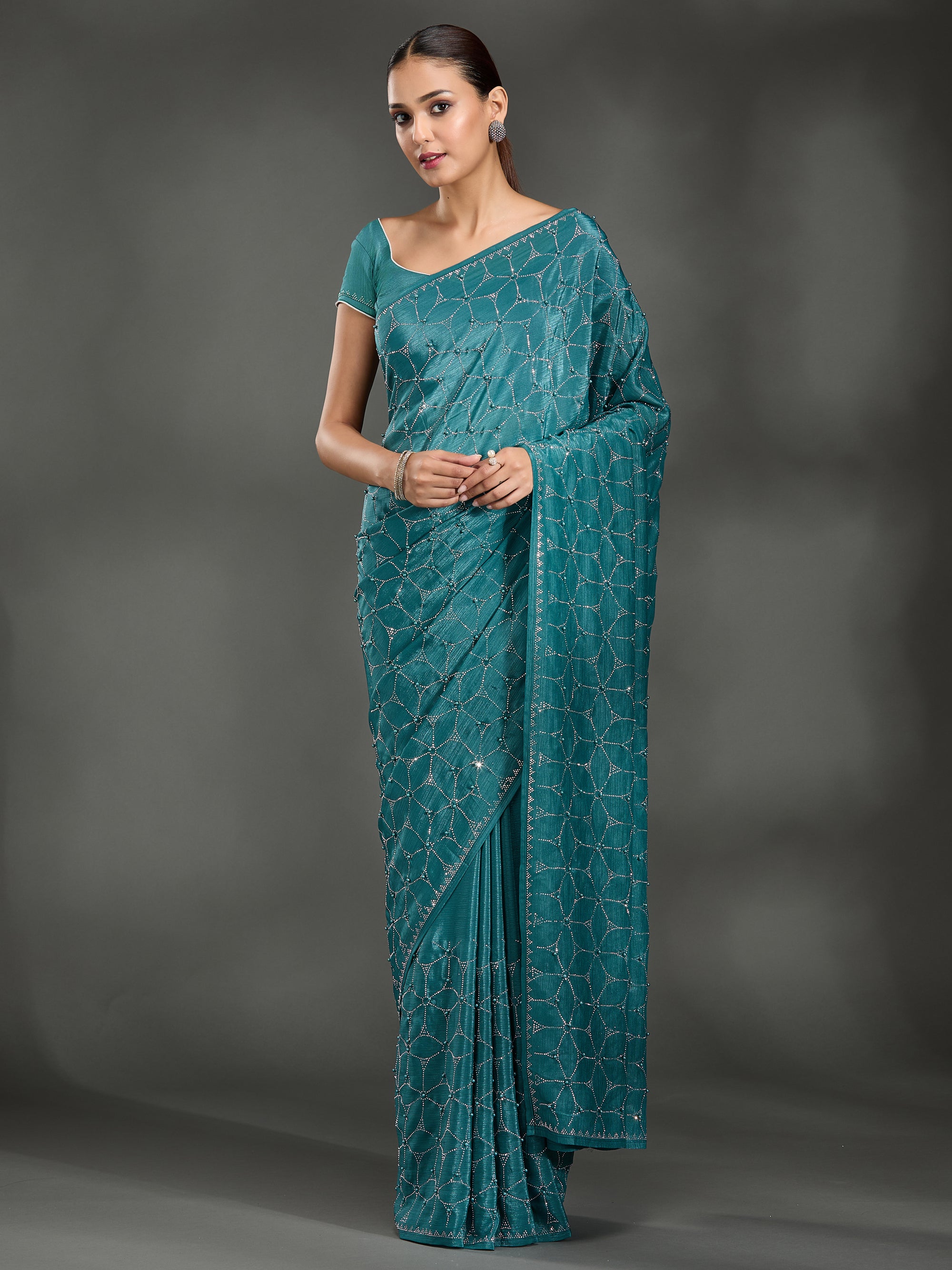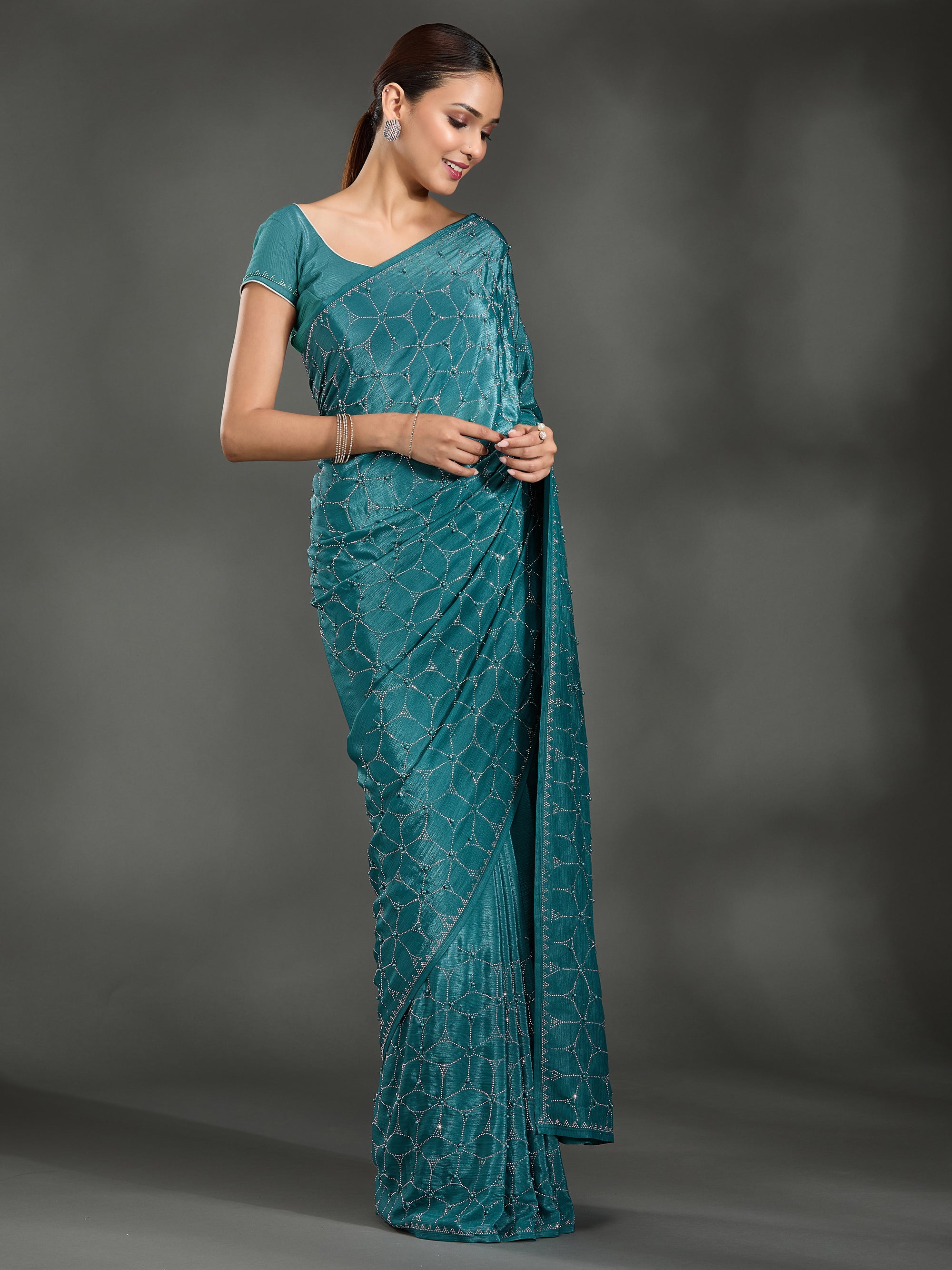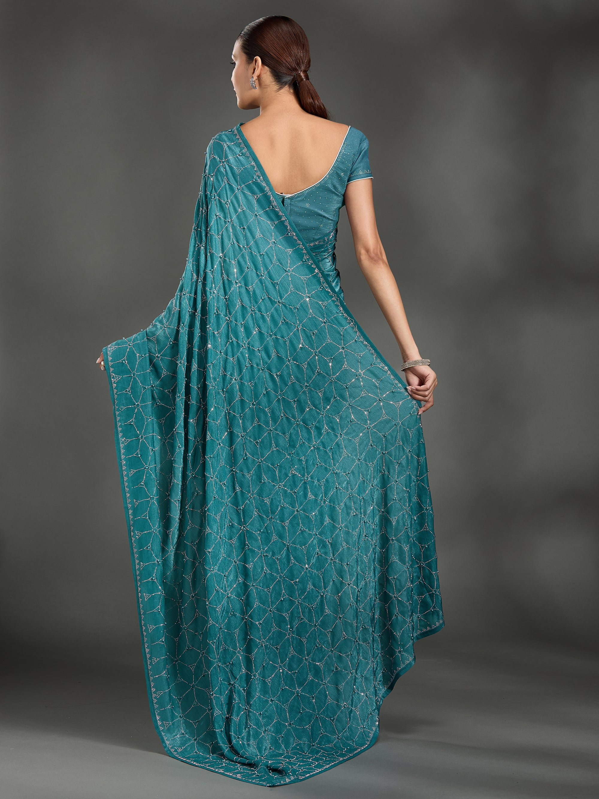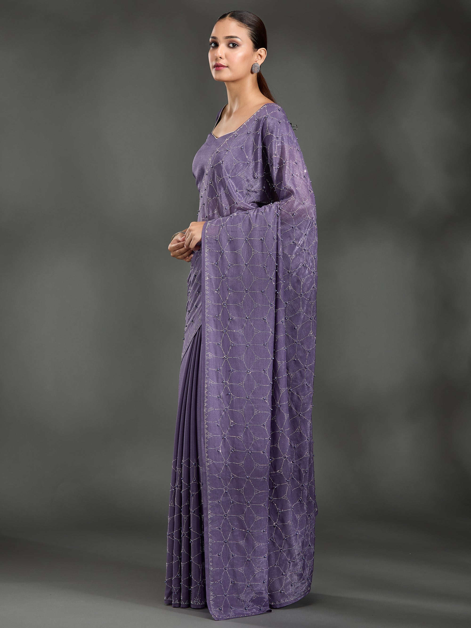 Ravishing organza saree with moti, sequin, stone & embroidery