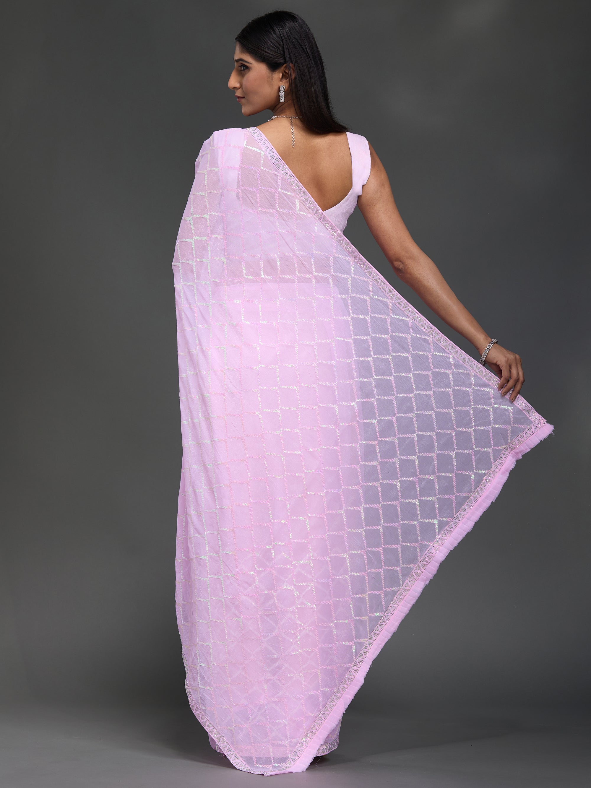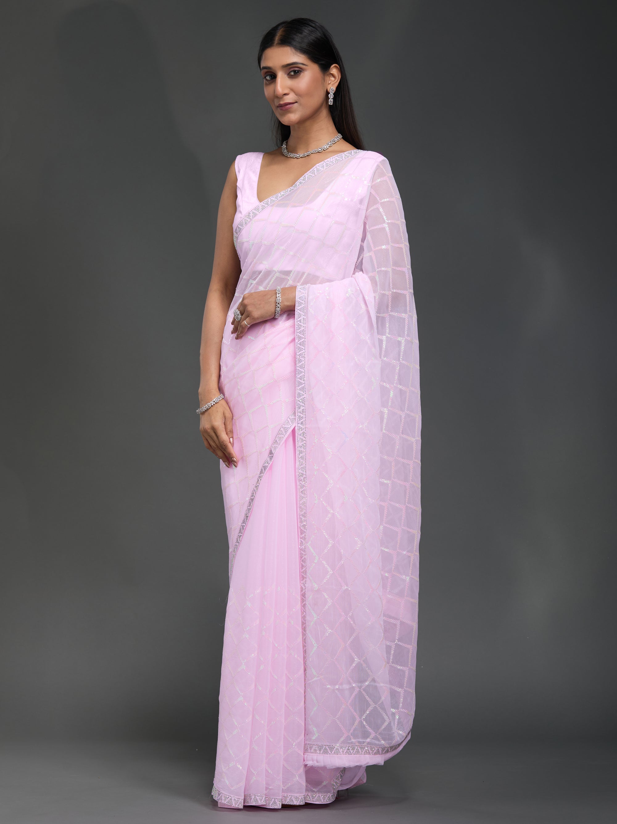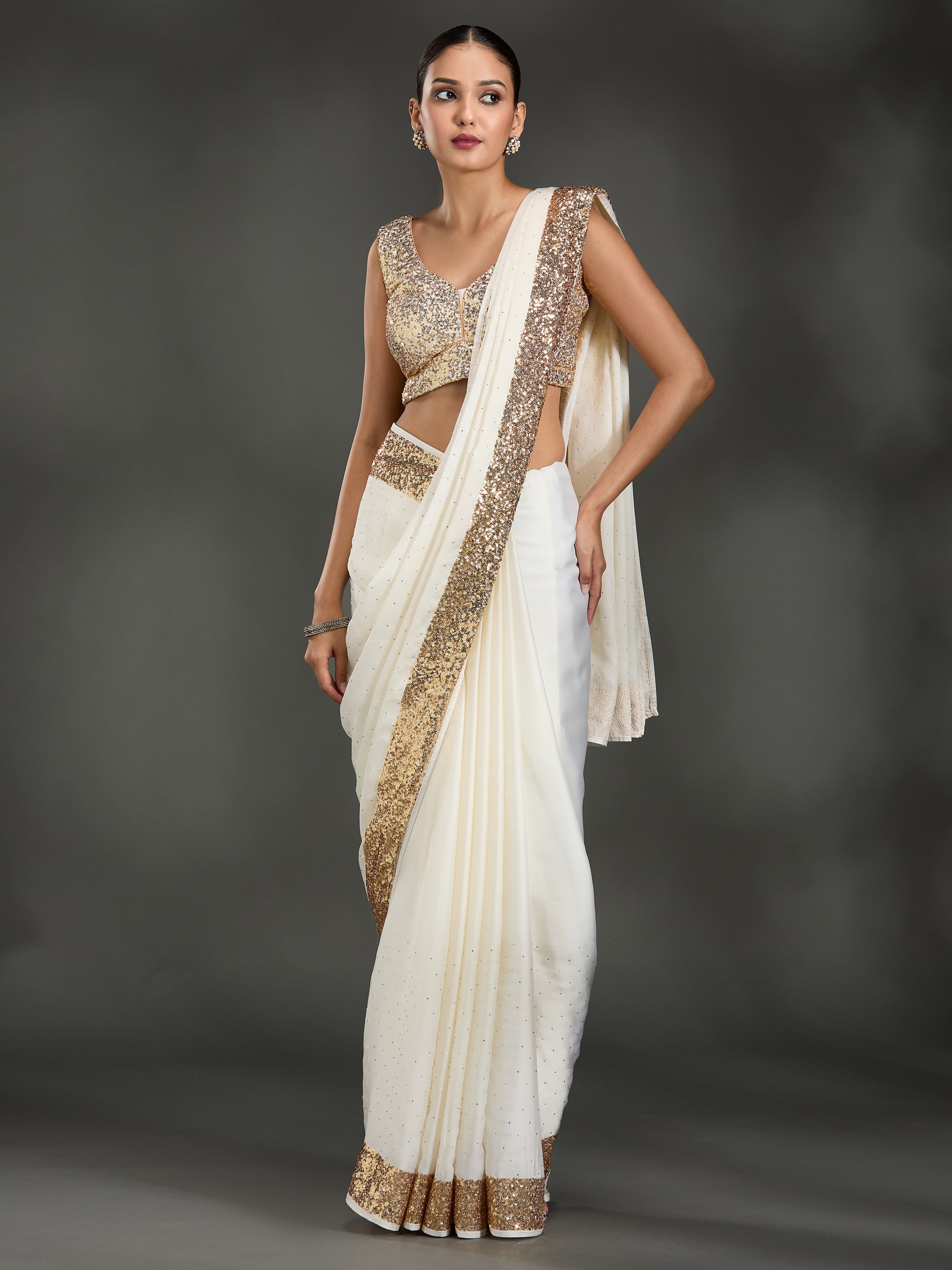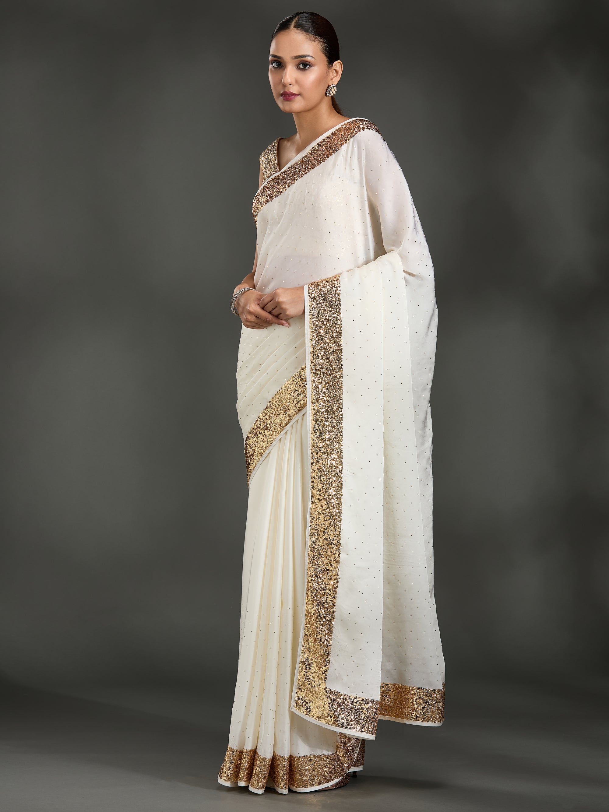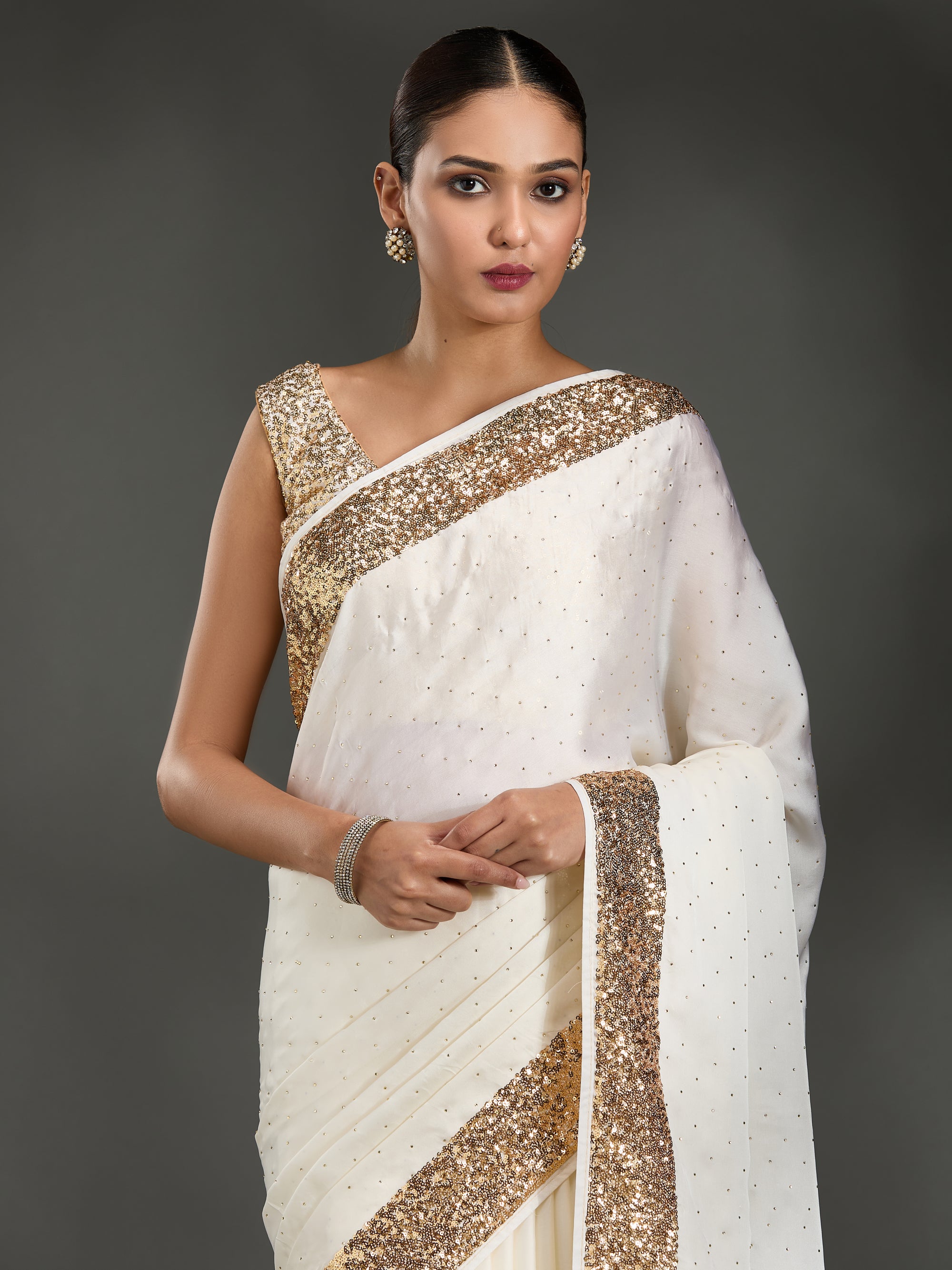 Ravishing organza saree with moti, sequin, stone & embroidery