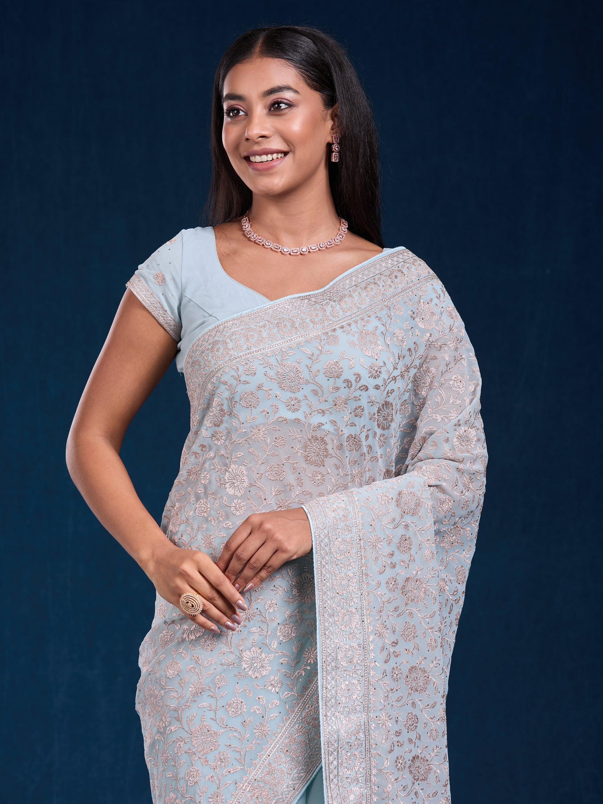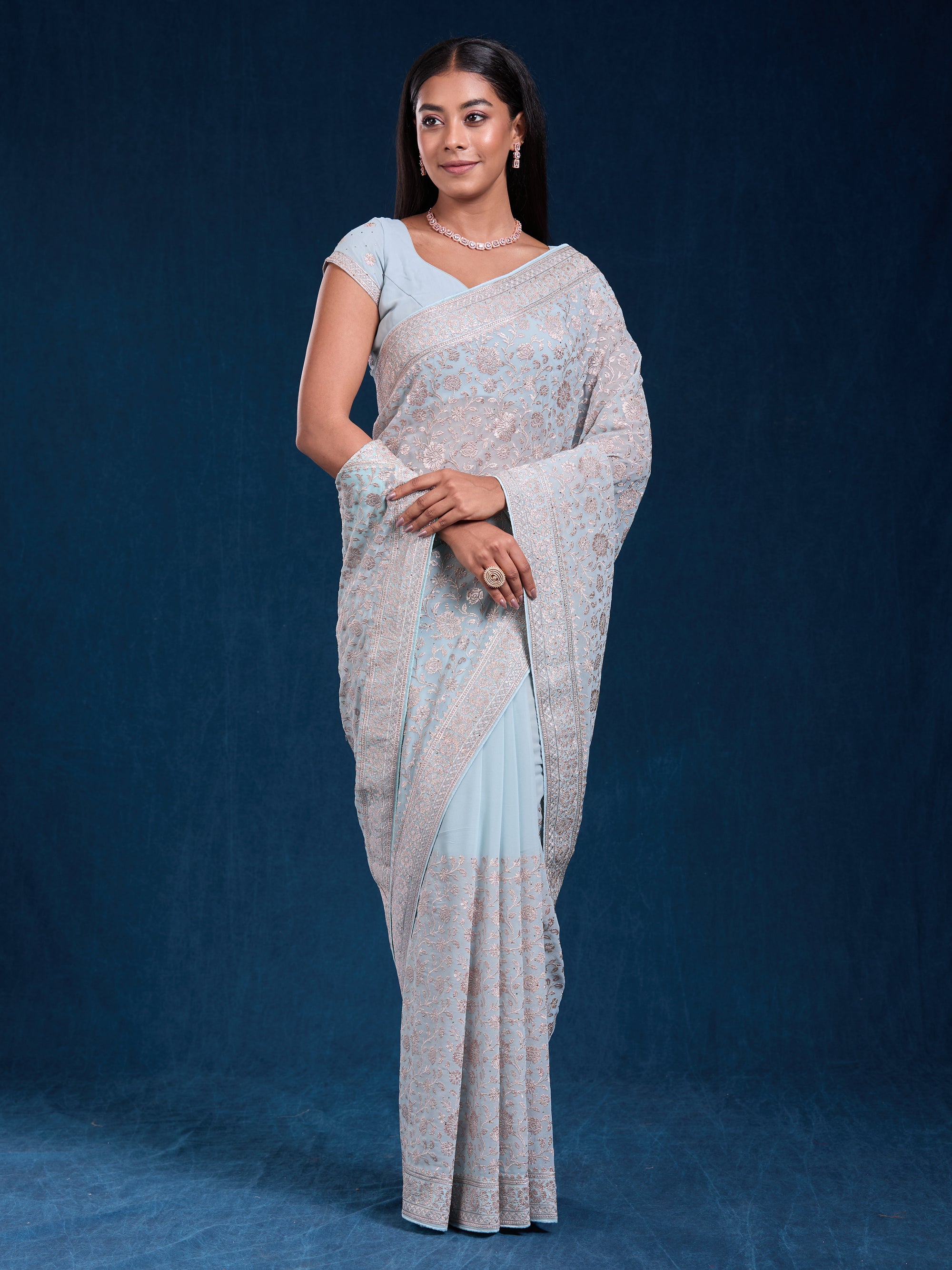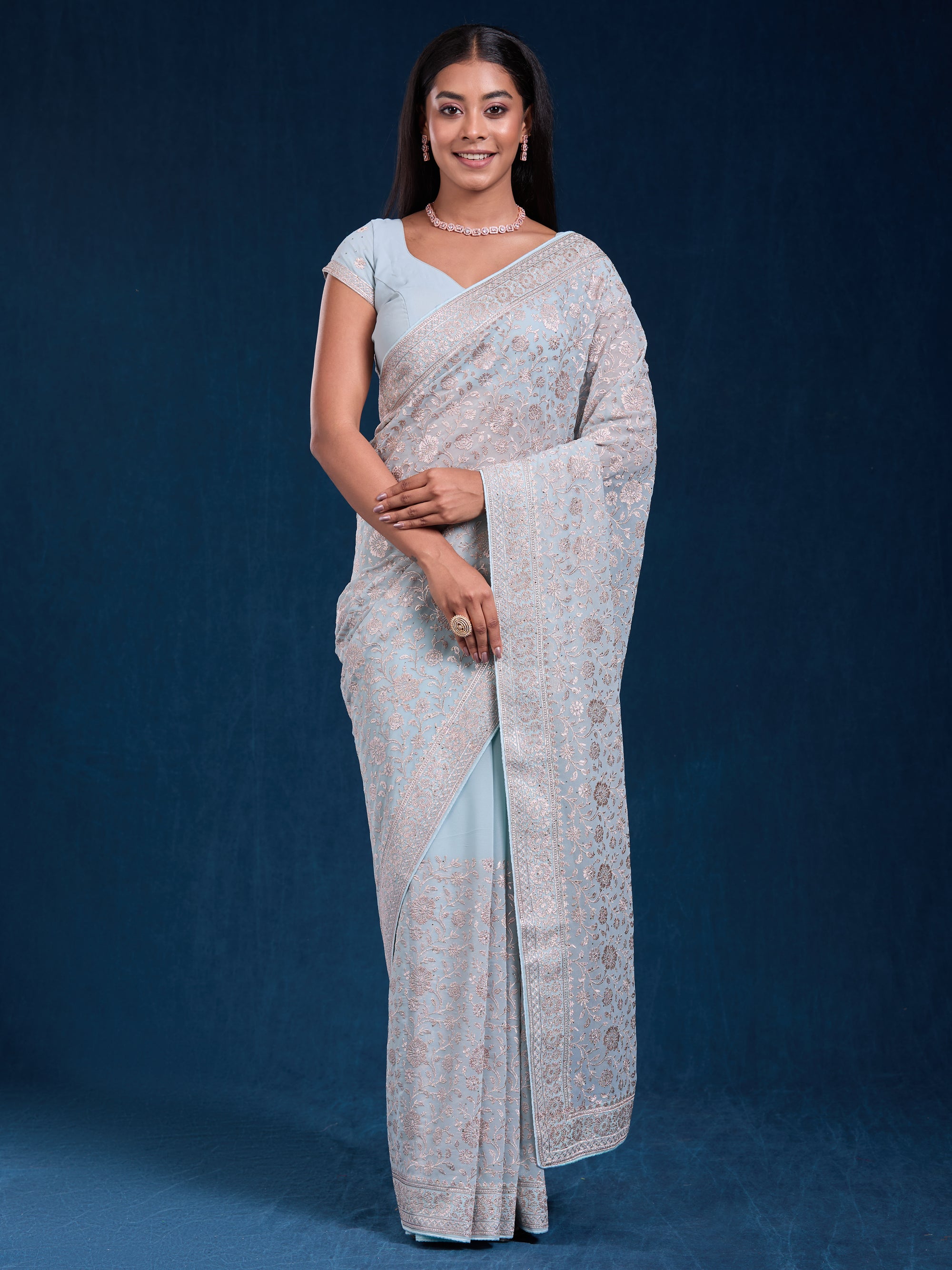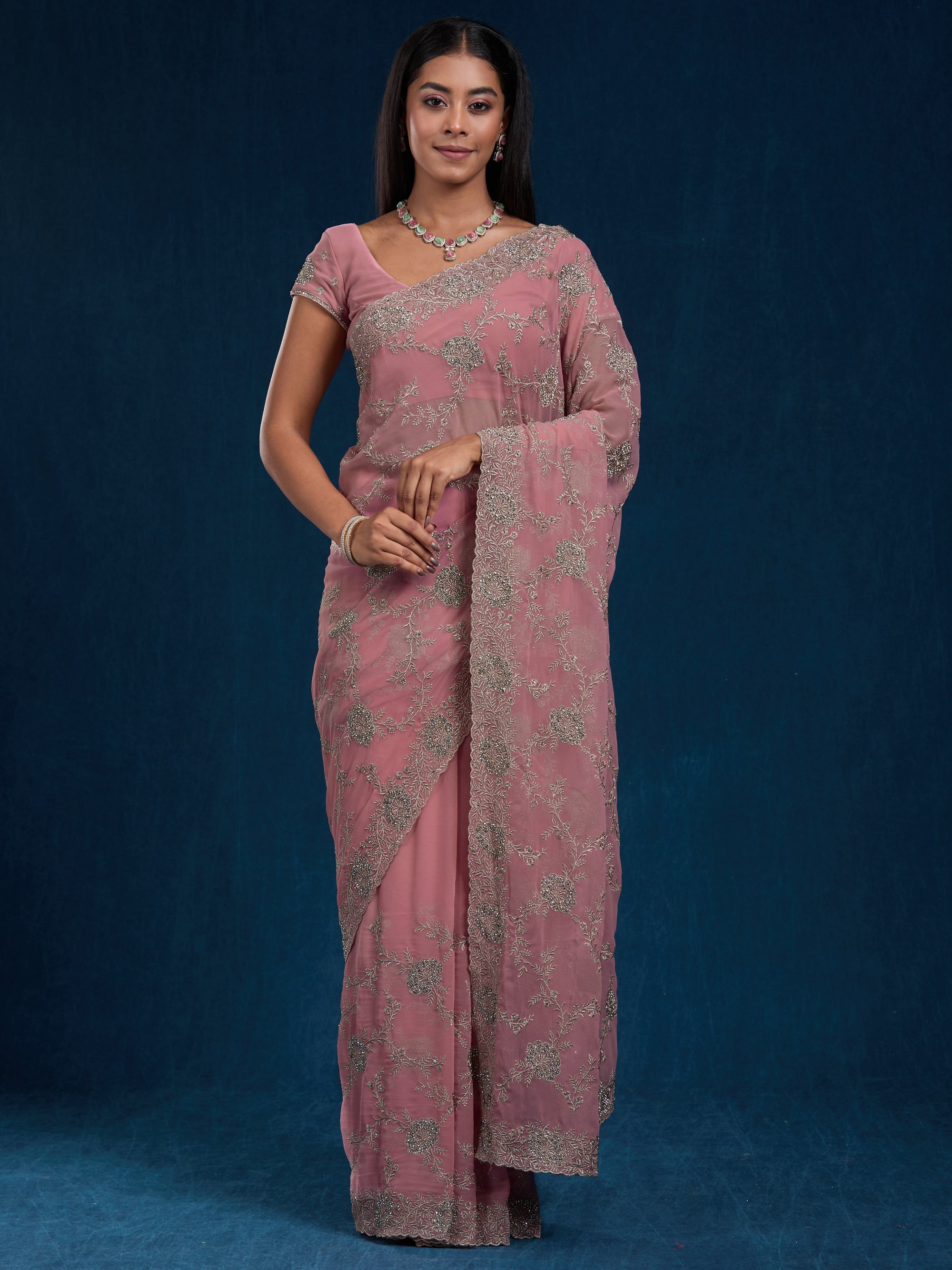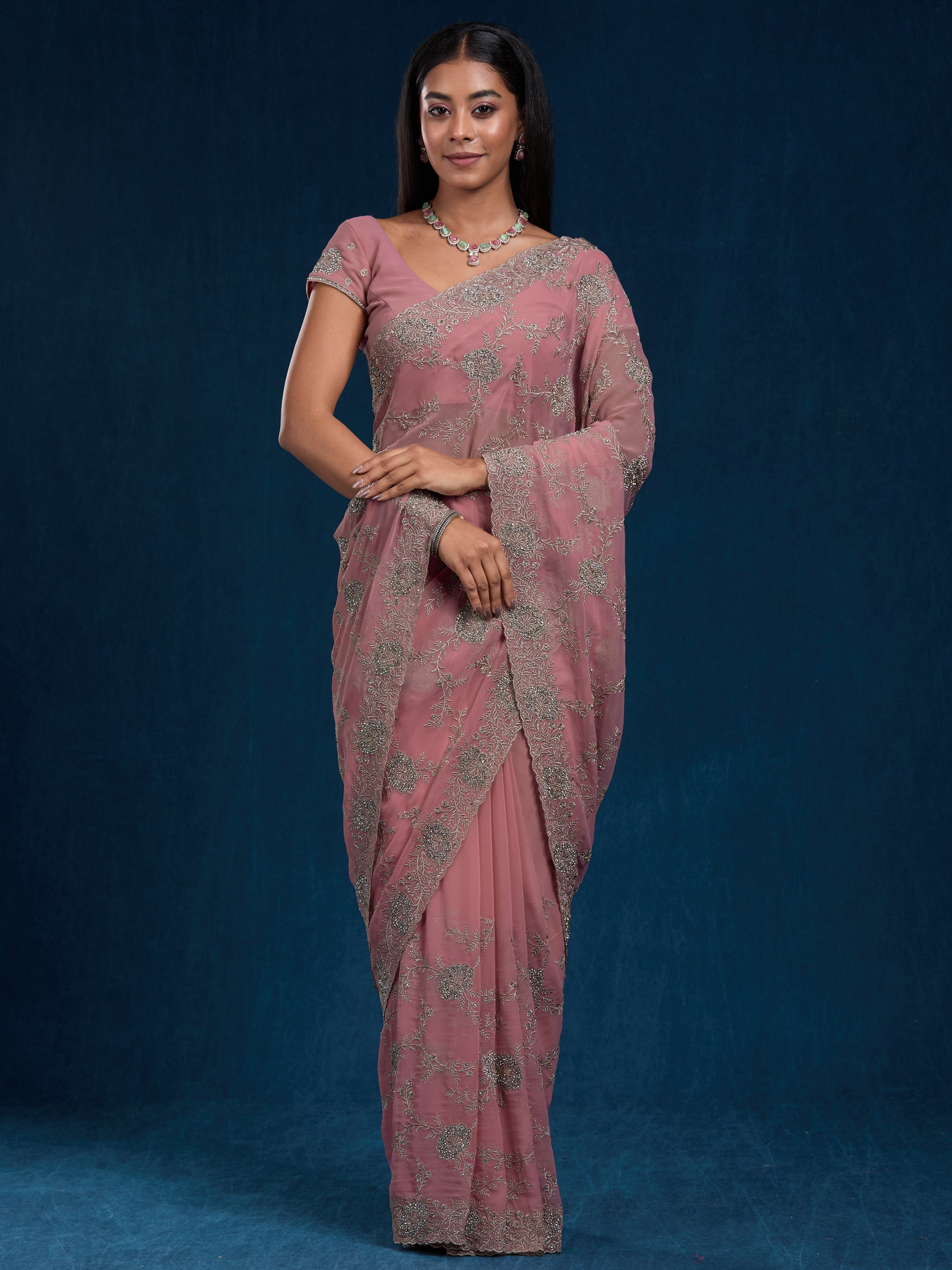 Elegant goergette with zari, swarovski & embroidery