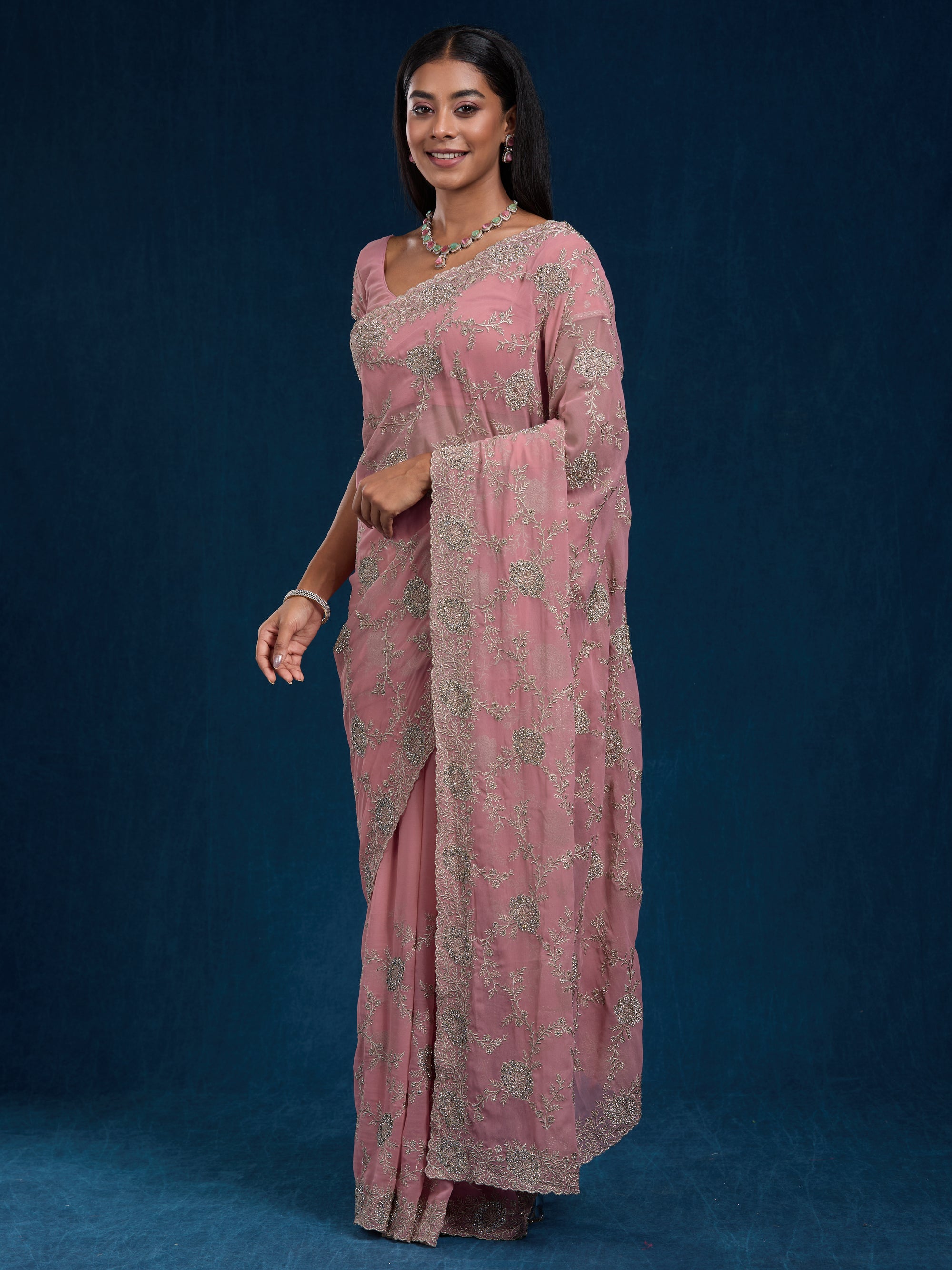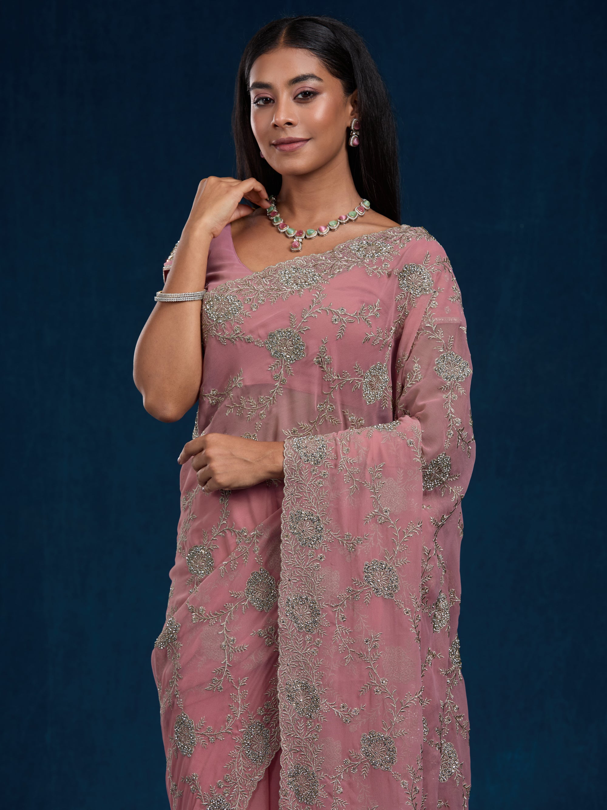 Beautiful georgette with stones, swarovski, zari & embroidery
