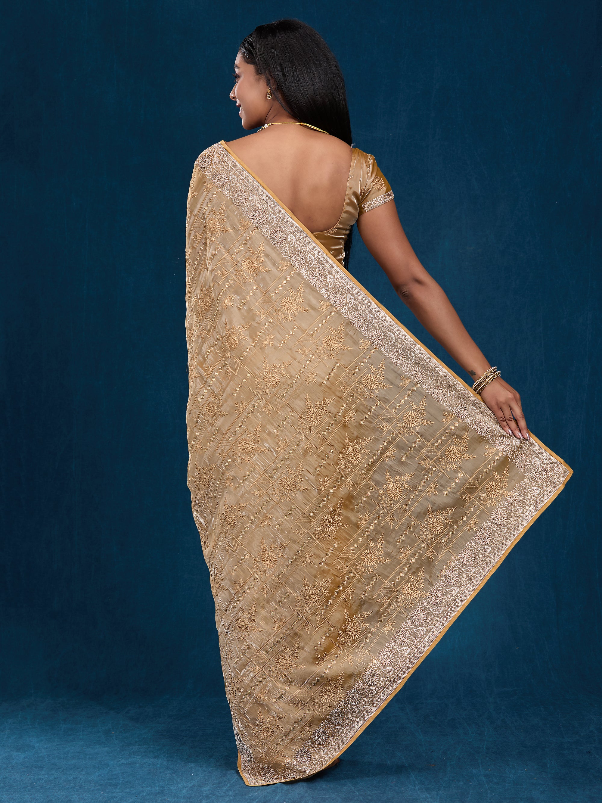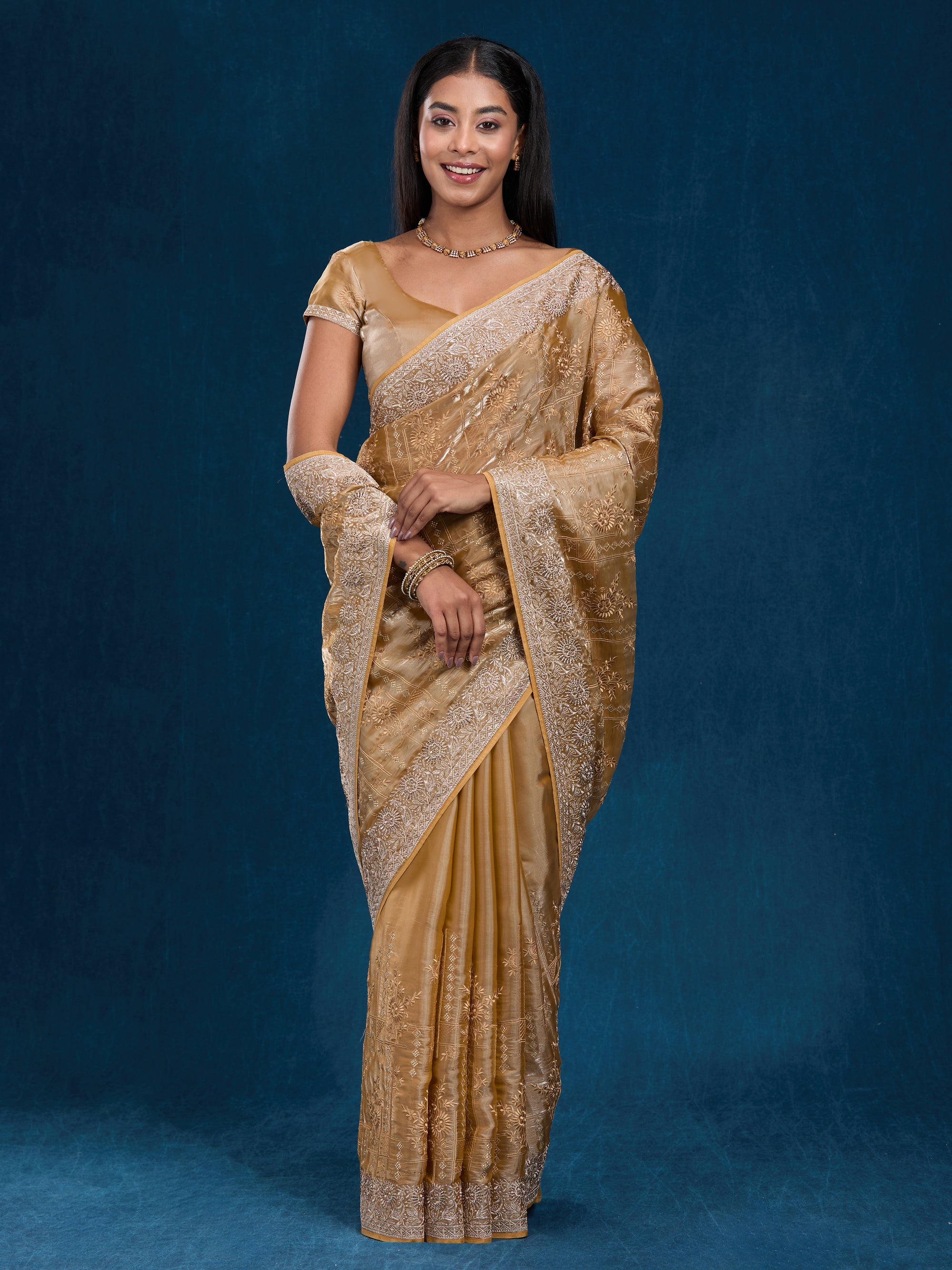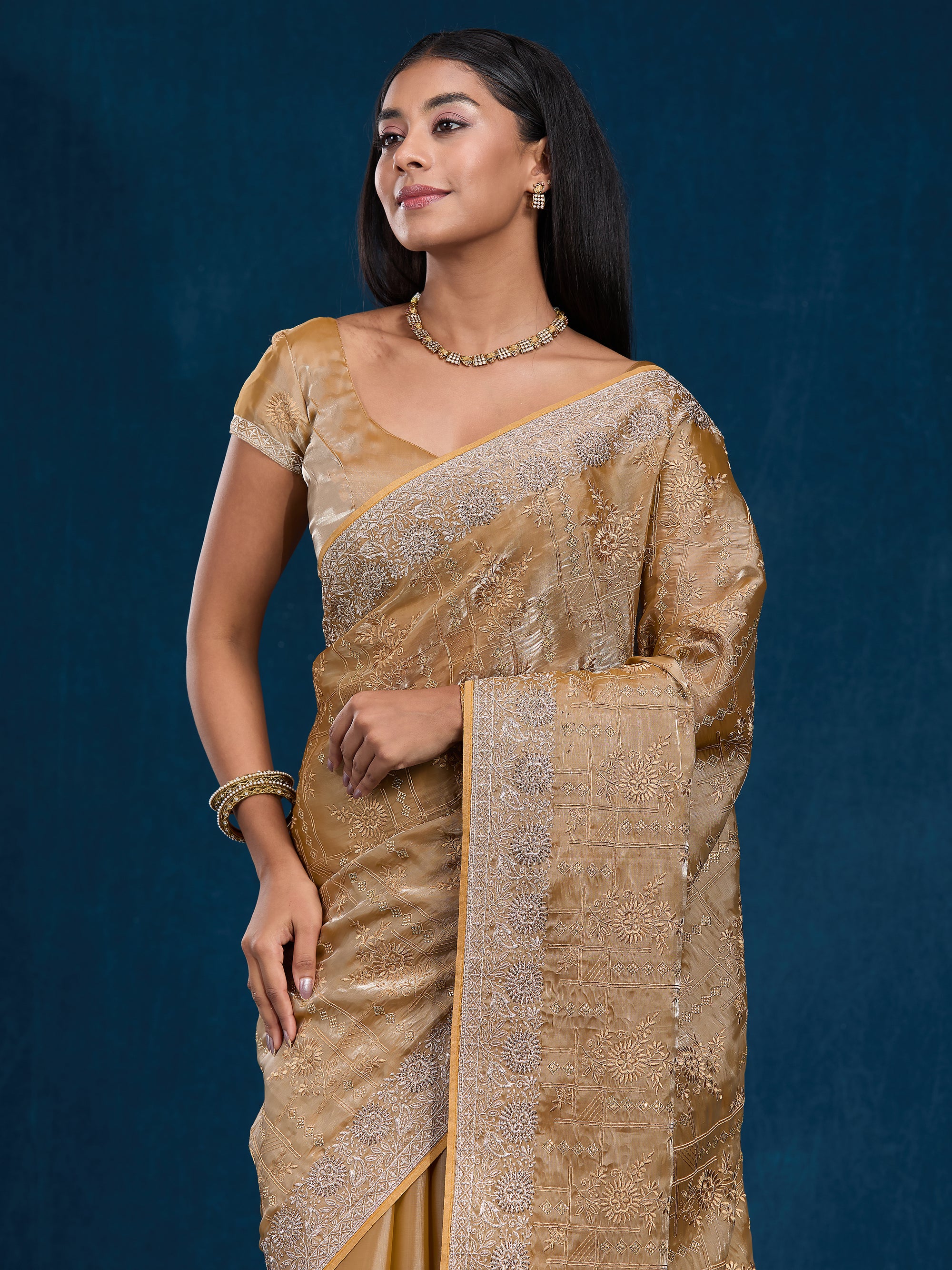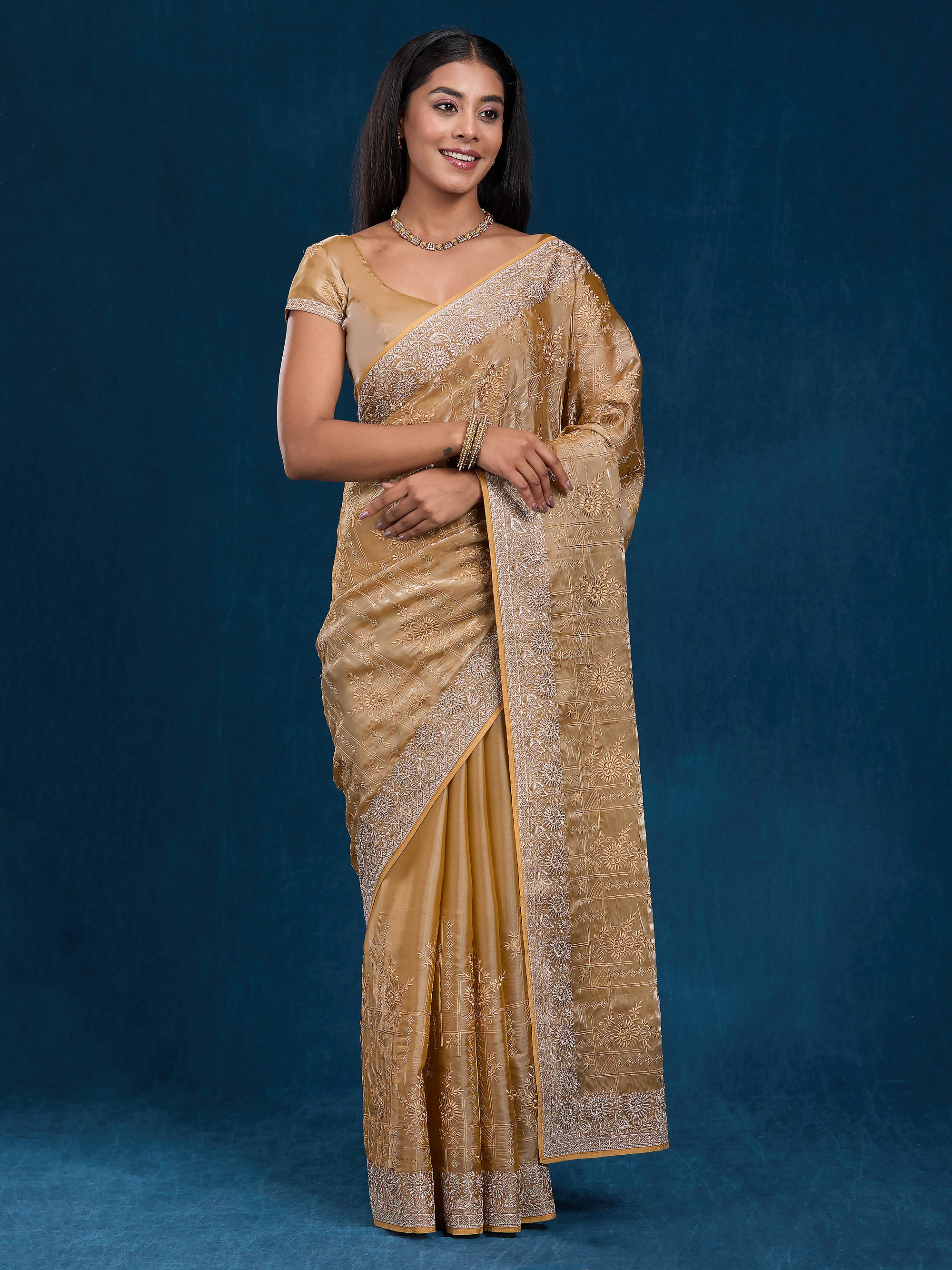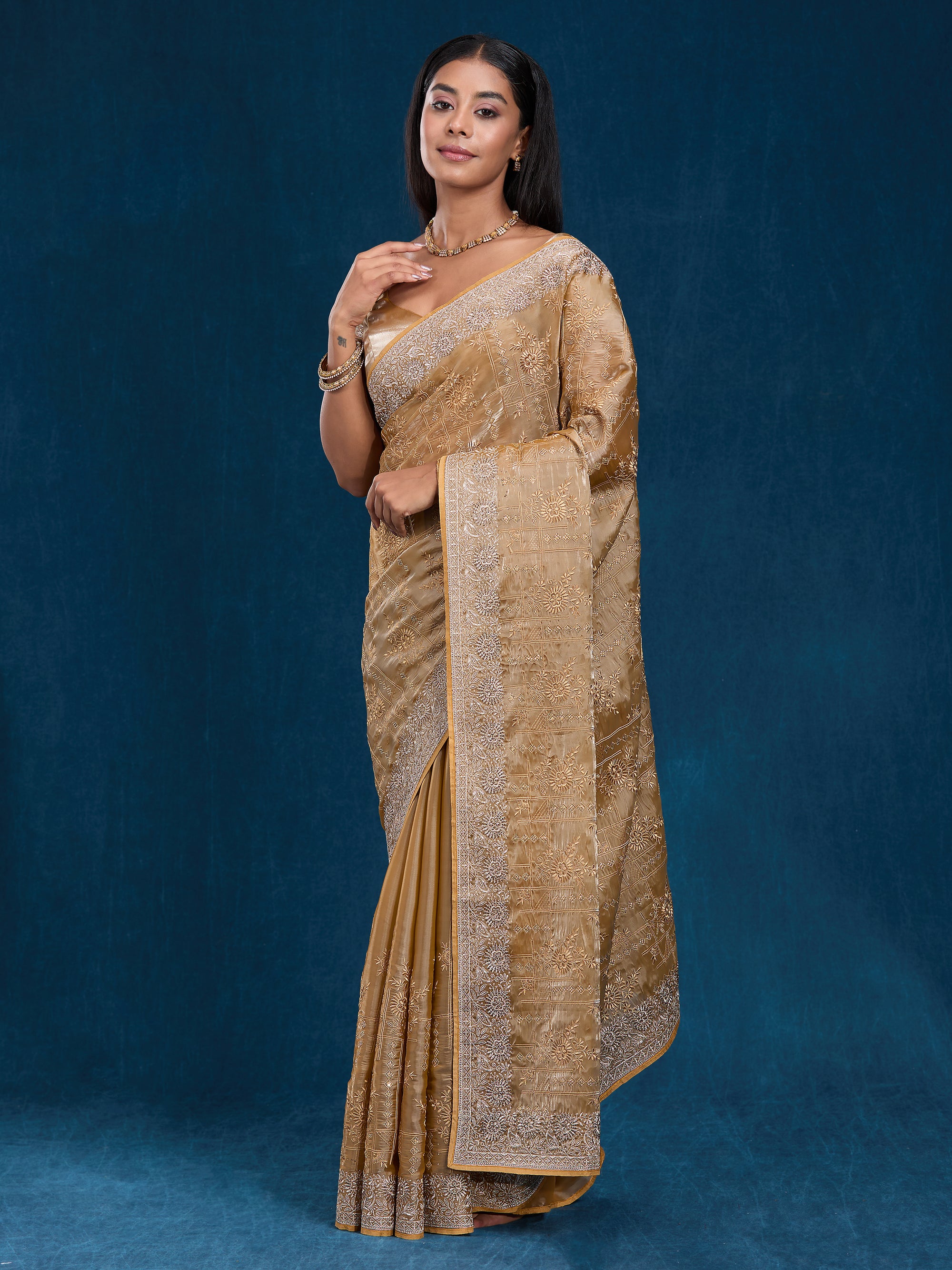 Graceful organza saree with zari, stone & embroidery work