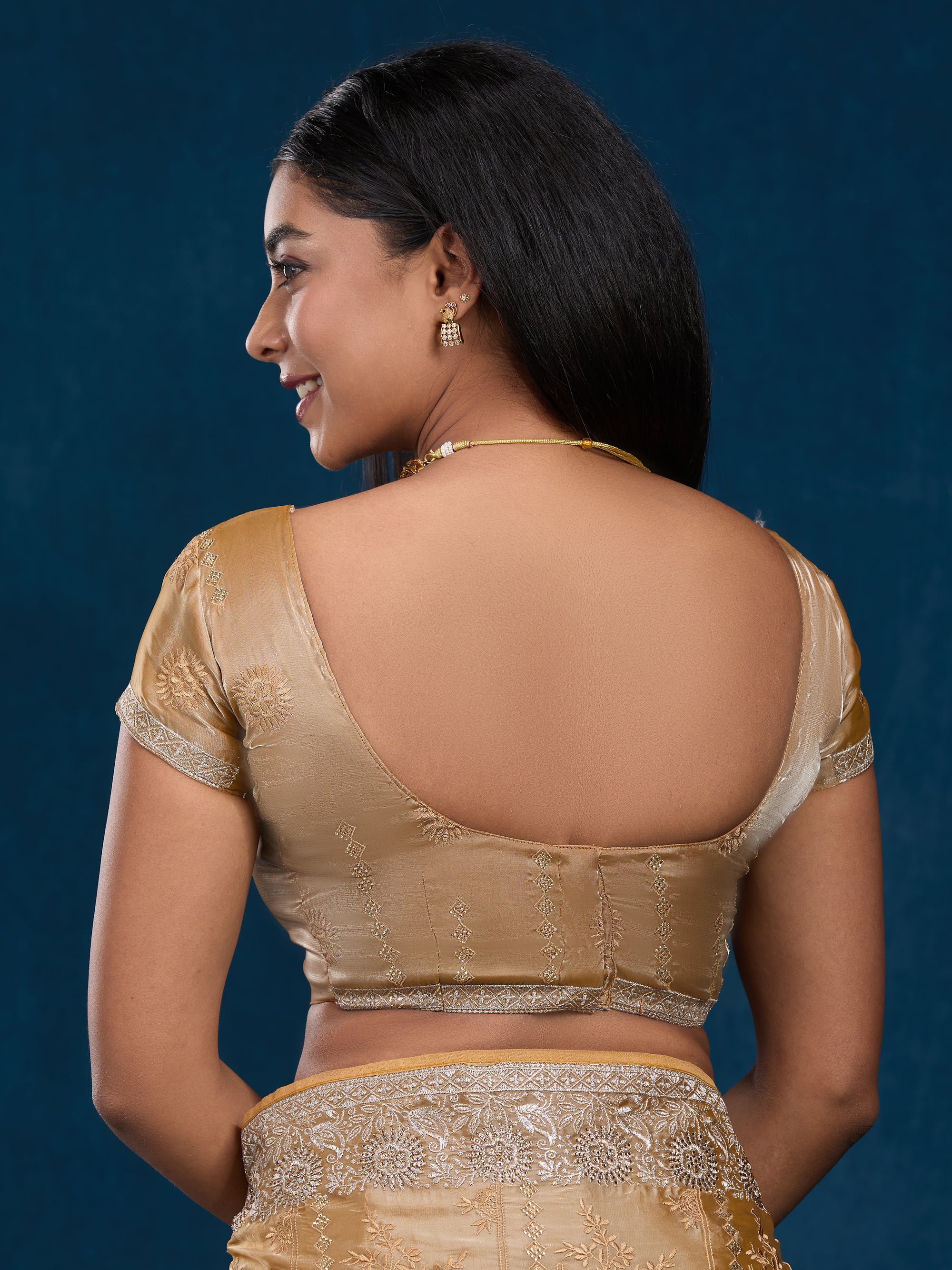 Classic crushed crepe saree with all-over gota, zari & stones