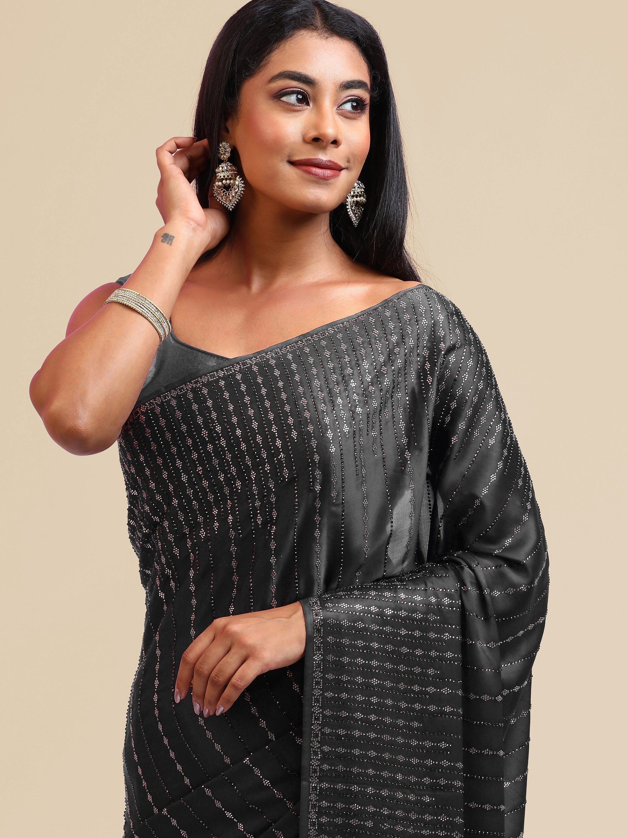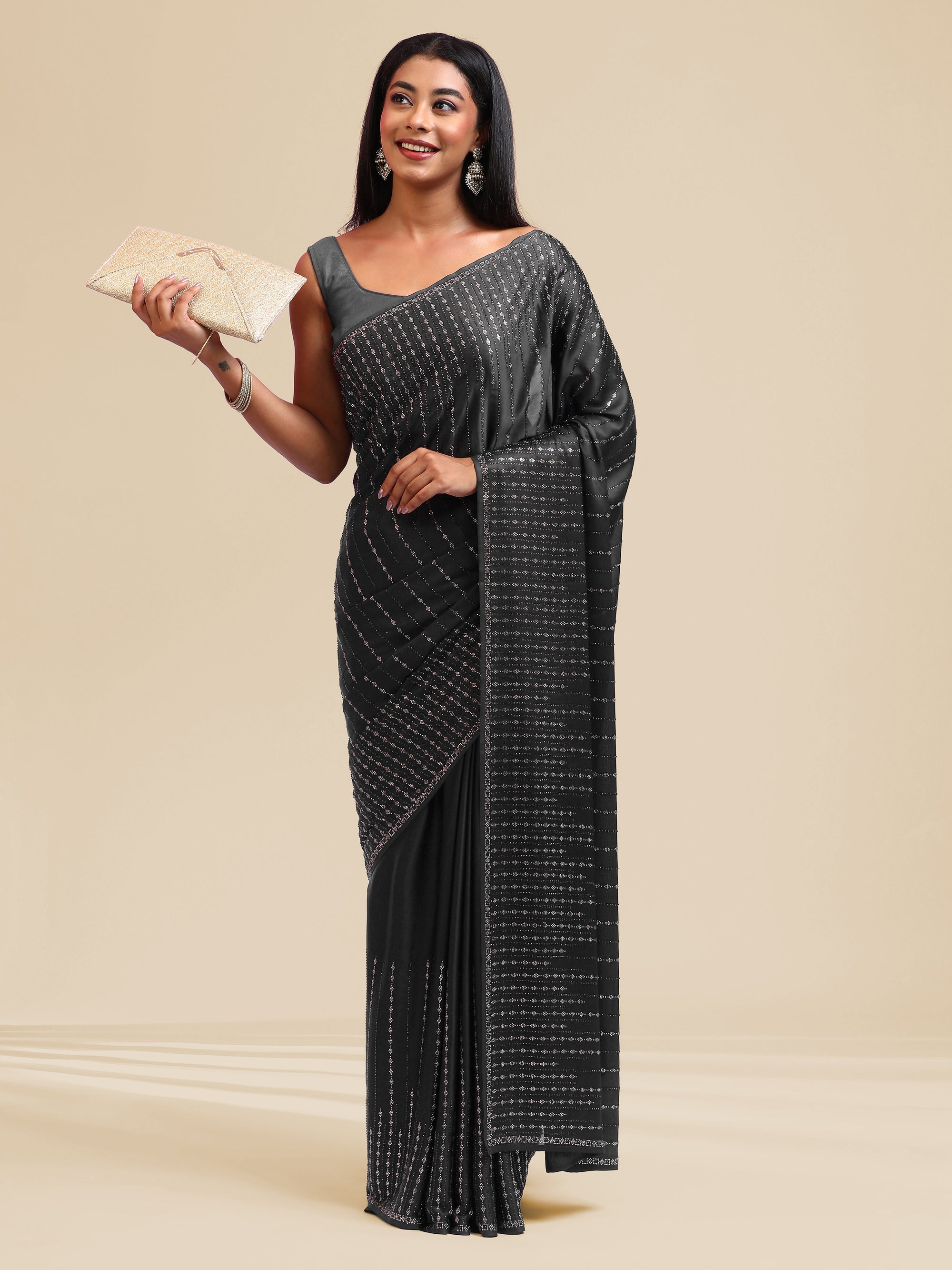 Exotic crepe saree with embedded stones & swarovski work
