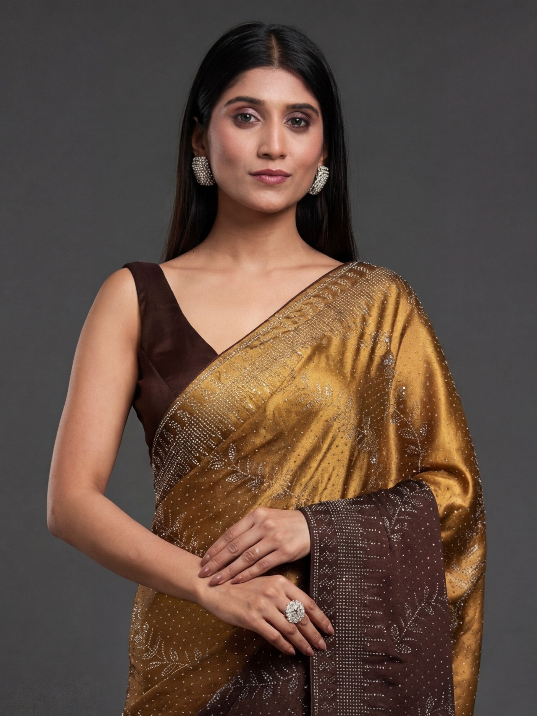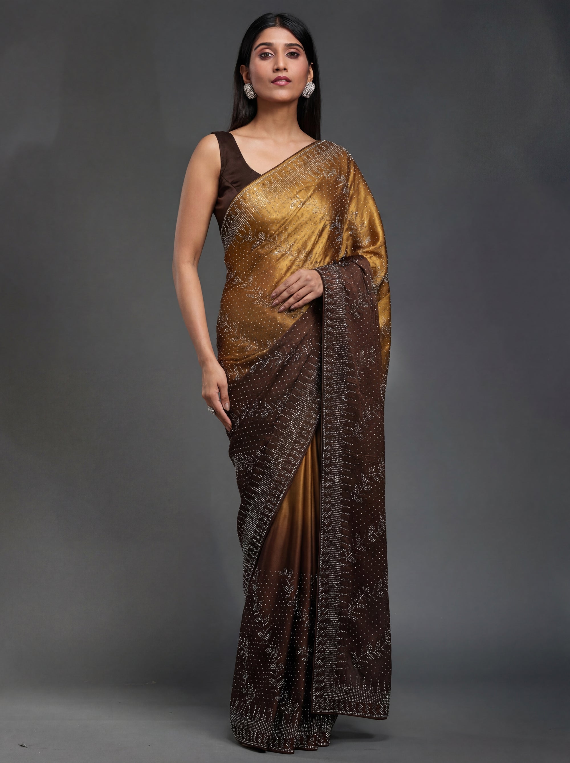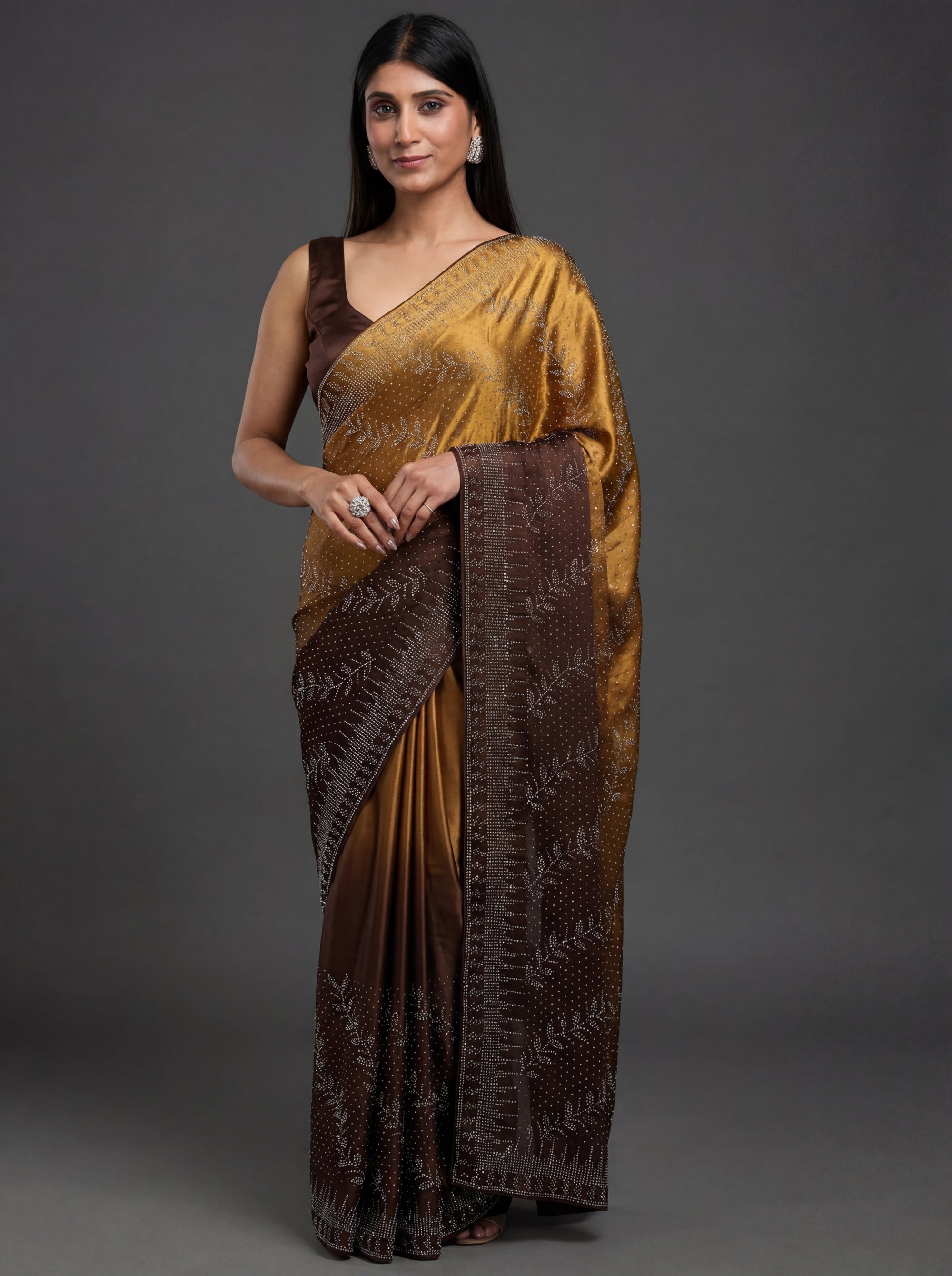 Sleek satin saree with stone & Swarovski