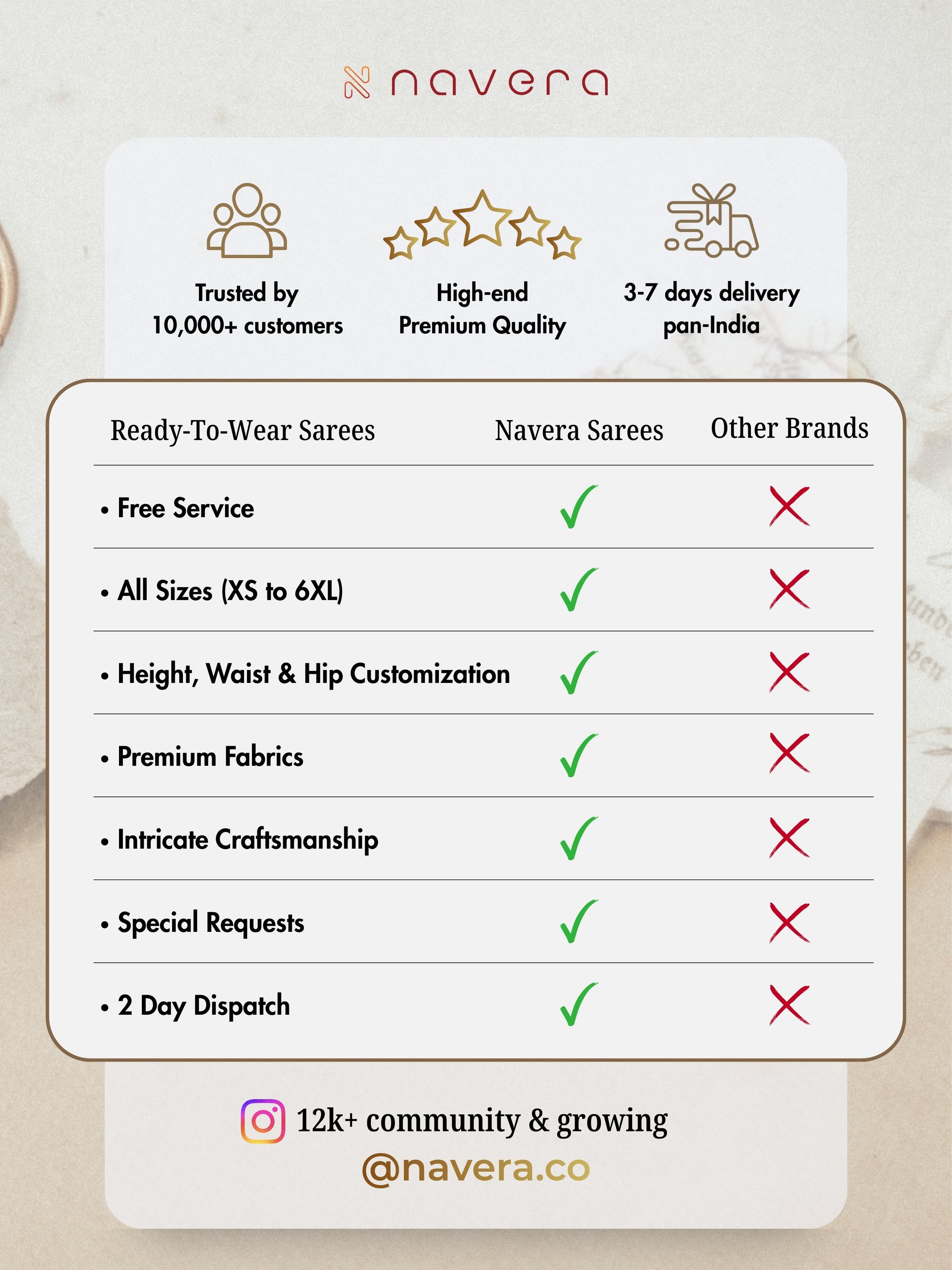 Share your measurements or select add-ons on the order confirmation page.