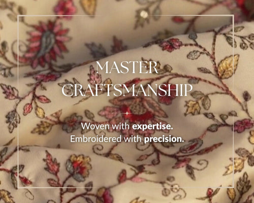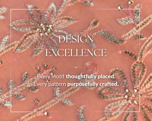 In the blush of a gentle dawn, this exquisite piece whispers tales of elegance and charm. Each shimmering sequin catches the light, like stars scattered across a serene pink sky. The artistry of cutdana work adds a layer of sophistication, creating a dance of texture and sheen.